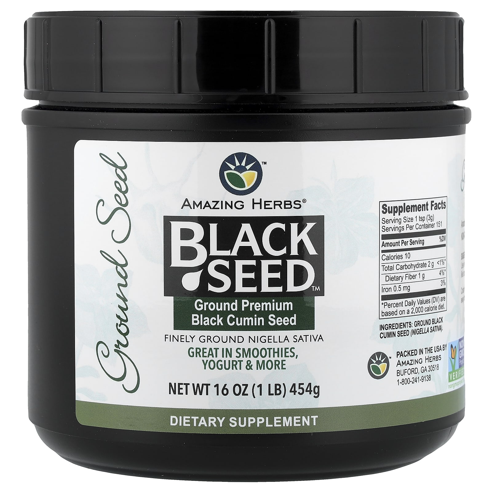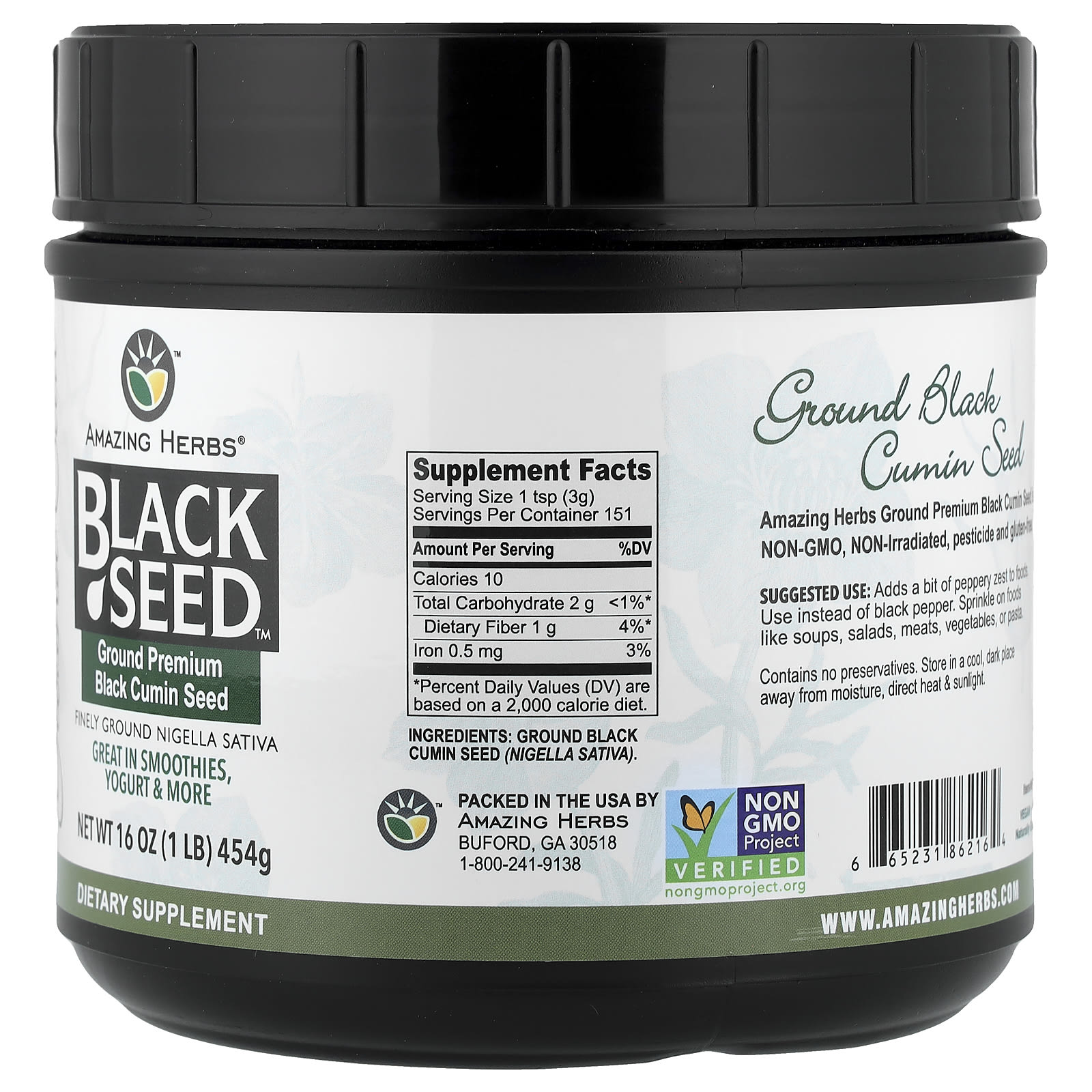Amazing Herbs Black Seed™ Semente de Cominho Preto Premium Moída 454 g (1 lb) – Amazing Herbs Suplementos Ervas Cominho Preto.
