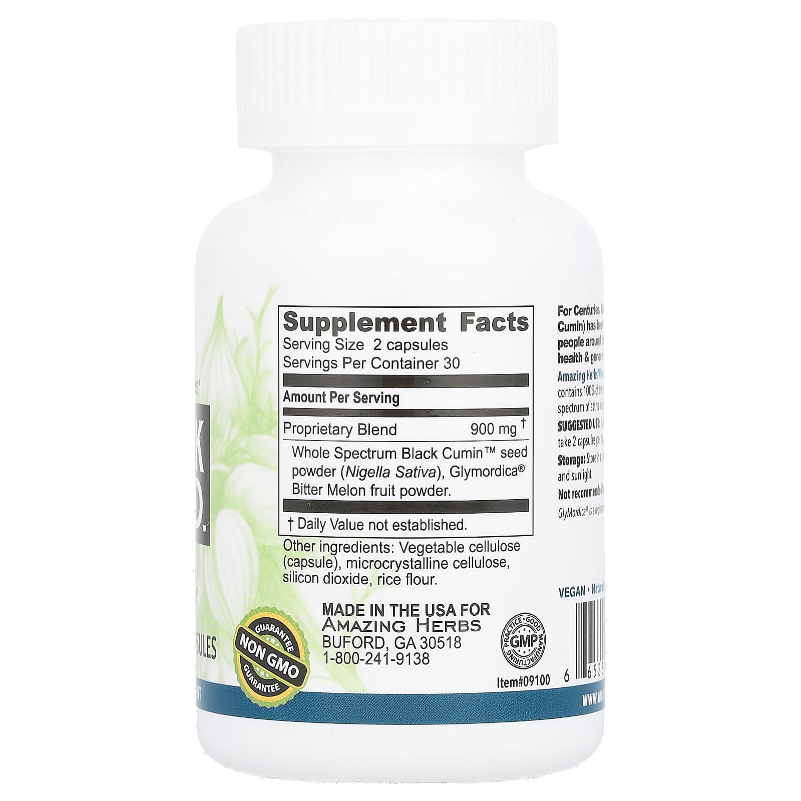 Amazing Herbs Semente Negra Melão-de-São-Caetano 60 Cápsulas Vegetarianas – Amazing Herbs Suplementos Ervas Cominho Preto.
