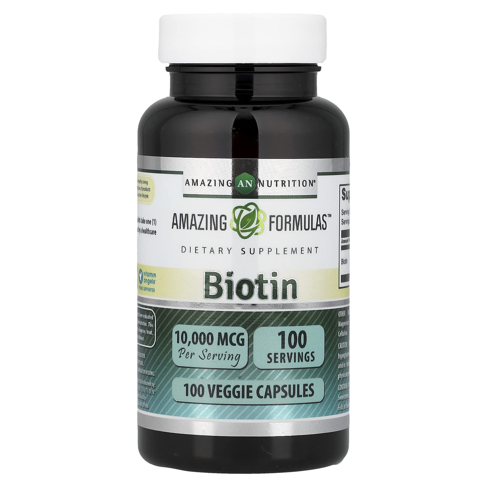 A Biotina é uma vitamina solúvel em água que faz parte do complexo de vitaminas B, um grupo de nutrientes essenciais necessários para inúmeras funções no corpo. A Amazing Formulas oferece 10.000 mcg de biotina em cada cápsula.