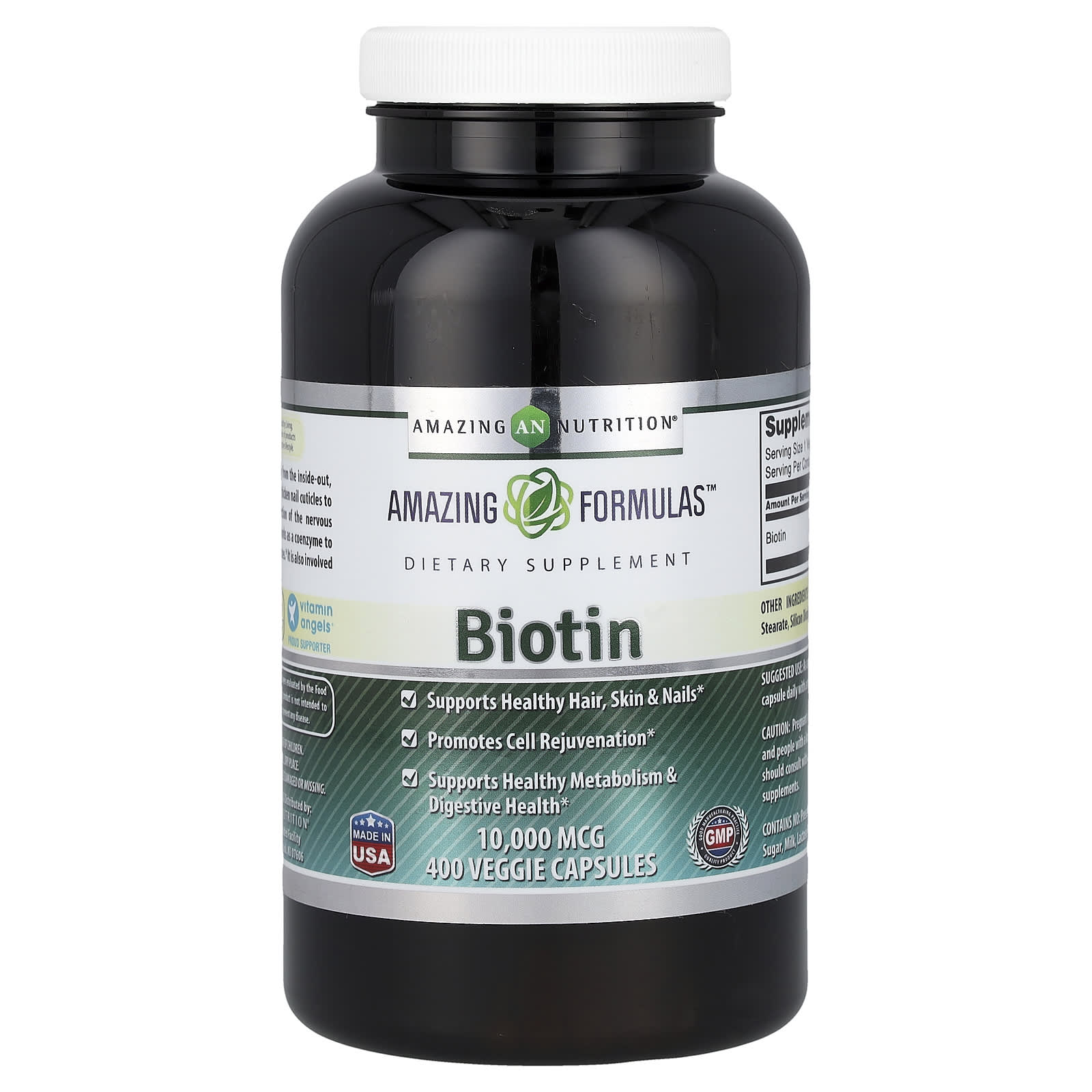 Amazing Nutrition Biotina 10.000 mcg 400 Cápsulas Vegetais – Amazing Nutrition Suplementos Cabelos, Pele e Unhas Vitamina B7 (Biotina).