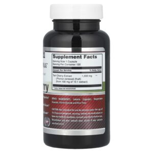 O suplemento Tart Cherry da Amazing Formulas ™ fornece 1.000 mg (1 g) de cereja azeda em cada cápsula, derivado de um extrato 4: 1 de qualidade premium. As Cerejas Azedas contêm antocianinas, um tipo de antioxidante que ajuda a estimular a circulação sanguínea e a função nervosa saudáveis. Os antioxidantes trazem diversos benefícios para a saúde, entre eles neutralizar os danos causados por radicais livres, auxiliar a mobilidade das articulações e dos tecidos conjuntivos e promover o envelhecimento saudável. A Cereja Azeda ajuda a prevenir a inflamação, o que promove o equilíbrio dos níveis de ácido úrico.