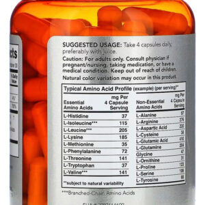 2. Vantagem da Forma de Apresentação: Apresentado em cápsulas, este produto oferece conveniência e facilidade de consumo. Uma maneira prática de obter uma variedade de aminoácidos essenciais para o corpo.
