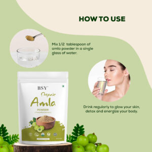 Descubra o poder da natureza com o BSY Organic Amla Powder, derivado da groselha indiana (Emblica officinalis). Este superalimento é um tesouro natural de nutrientes, tornando-o uma adição essencial à sua rotina de bem-estar. O pó de amla orgânico BSY é rico em antioxidantes, vitamina C e uma série de outros compostos benéficos que ajudam na saúde geral e na vitalidade. O pó de amla orgânico BSY é feito de groselhas indianas de alta qualidade, cuidadosamente processadas para preservar sua bondade natural. É isento de aditivos, conservantes e corantes artificiais, garantindo que você obtenha a forma mais pura desse poderoso superalimento. O pó de Amla é repleto de antioxidantes que ajudam a combater os radicais livres, protegendo seu corpo do estresse oxidativo. Amla é conhecida por seu alto teor de vitamina C, que ajuda a melhorar a saúde, ajuda a apoiar a saúde da pele e melhora a vitalidade geral. Benefícios para o cuidado do cabelo: O pó de Amla é um remédio natural bem conhecido para o cuidado do cabelo. Ajuda a fortalecer os folículos capilares e adiciona um brilho natural às madeixas. O uso regular pode ajudá-lo a obter cabelos saudáveis e brilhantes. Benefícios para o cuidado da pele: O alto teor de antioxidantes no pó de amla ajuda a rejuvenescer a pele, reduzir a pigmentação e fornecer um brilho natural. Ele também tem propriedades que ajudam a reduzir a acne e as cicatrizes, deixando sua pele radiante e jovem. – Descubra o poder da natureza com o pó de amla orgânico BSY, derivado da groselha indiana. Este superalimento é um tesouro natural de nutrientes, o que o torna uma adição essencial à sua rotina de bem-estar. – Nosso pó de amla orgânico BSY é feito de groselhas indianas de alta qualidade, cuidadosamente processadas para preservar sua bondade natural. É isento de aditivos, conservantes e cores artificiais, garantindo que você obtenha a forma mais pura. Amla é conhecida por seu conteúdo excepcionalmente alto de vitamina C, que ajuda a sustentar a pele e aumenta a vitalidade geral. – Para cuidados com os cabelos: misture o pó de amla orgânico BSY com água para formar uma pasta. Aplique no couro cabeludo e no cabelo, deixe agir por 30 minutos e depois enxágue bem. Use regularmente para obter melhores resultados. – Para cuidados com a pele: misture o pó de amla orgânico BSY com água, água de rosas ou iogurte para criar uma máscara facial. Aplique no rosto e pescoço, deixe agir por 15 a 20 minutos e depois enxágue com água morna. Use semanalmente para uma pele radiante. – Para a saúde digestiva: adicione meia colher de chá de pó de amla orgânico BSY aos seus smoothies, sucos ou água. Você também pode misturá-lo com mel para um rápido aumento da saúde. Consuma diariamente para apoiar o sistema digestivo e a saúde geral.