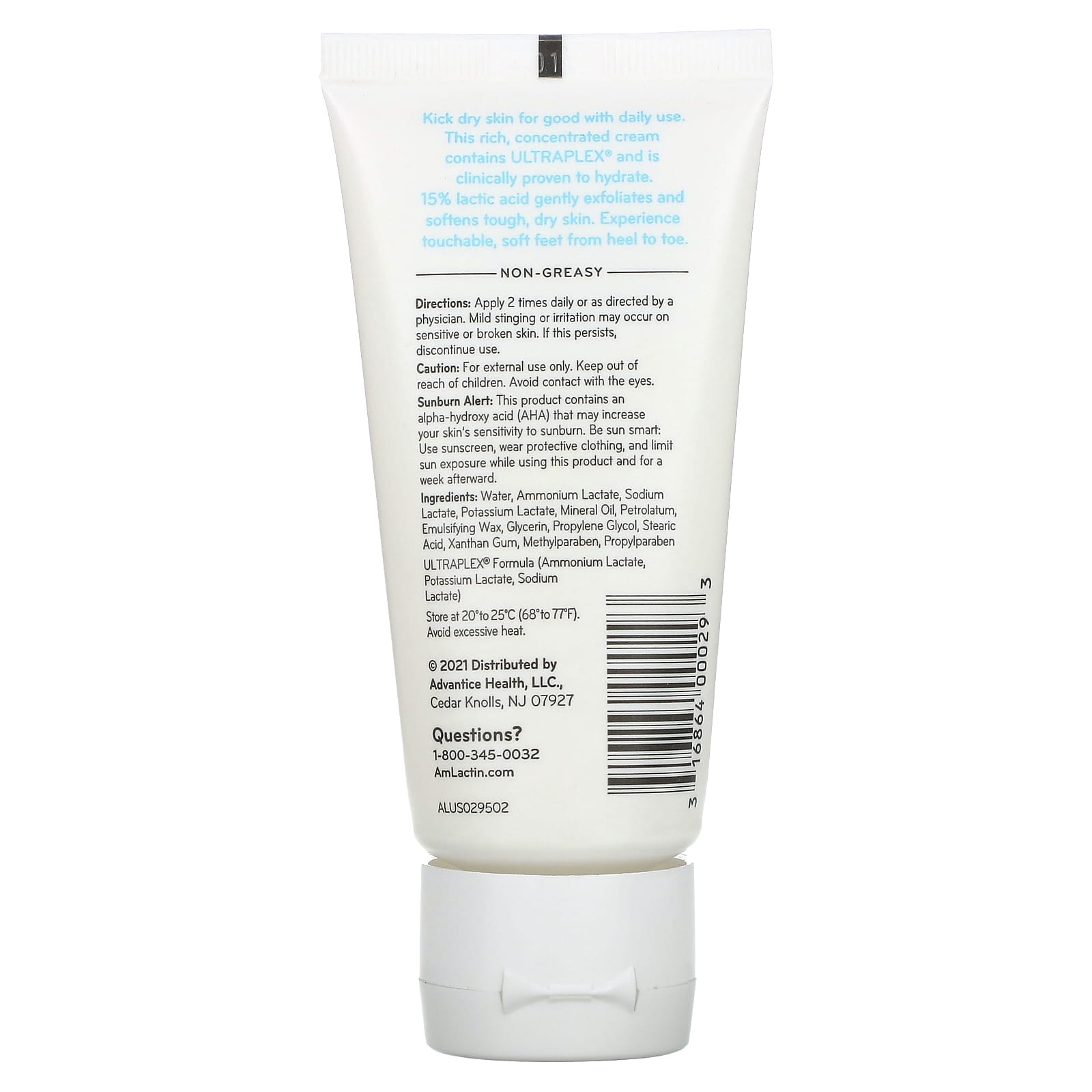 Deixe a pele seca para sempre com o uso diário. Este creme rico e concentrado contém Ultraplex® e sua hidratação foi comprovada clinicamente. O ácido lático a 15% esfolia suavemente e suaviza a pele dura e seca. Experimente pés macios e tocáveis do calcanhar aos dedos do pé.