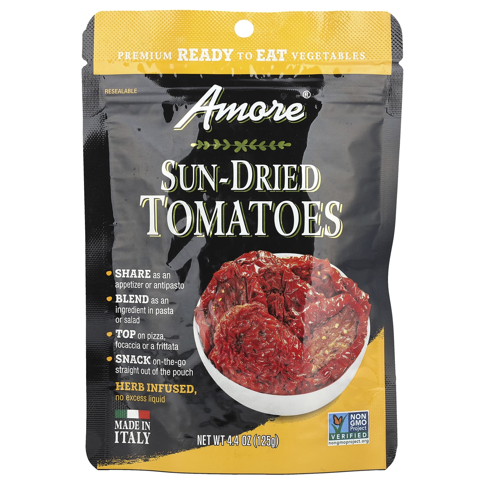 Amore Tomates Secos ao Sol Infusão de Ervas 125 g (44 oz) – Amore Alimentos Petiscos e lanches Frutas e Legumes Secos.