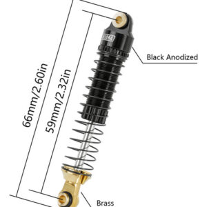 Especificações: Número da peça: 4M-71 Cor: preto Comprimento total: 66 mm (2,60 polegadas) Comprimento estendido (olho no olho): 59 mm (2,32 polegadas) Tamanho comprimido (olho a olho): 42 mm (1,65 pol.) Viagem máxima: 17 mm (0,67 pol.) Comprimento da mola: 45 mm (1,77 pol.) Espessura da mola: 0,45 mm 0,5 mm Cada peso: 7 g (0,25 oz), 8 g 0,28 onças) – Corpos de amortecimento de alumínio usinados em CNC para durabilidade e precisão. – Os amortecedores roscados permitem ajustes rápidos e fáceis de pré-carga, oferecendo controle preciso sobre a rigidez e a capacidade de resposta da suspensão. – O design telescópico oferece o máximo de deslocamento, garantindo um desligamento superior capacidade e manuseio rodoviários. – Retentor de mola inferior de latão e extremidade de haste para um centro de gravidade mais baixo, aumentando a estabilidade e o desempenho. – Tamanho comprimido (olho no olho): 42 mm (1,65 pol.), curso máximo: 17 mm (0,67 pol.), comprimento da mola: 45 mm (1,77 pol.), espessura da mola: 0,45 mm e 0,5 mm.