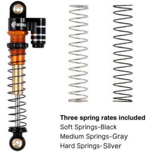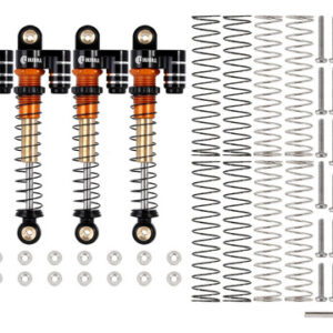 Características: Três taxas de mola incluídas, atendendo às necessidades de ventiladores RC Corpos de choque de alumínio usinados em CNC, parecem mais atraentes Design telescópico para deslocamento máximo Corpos de choque roscados para ajustes rápidos de pré-carga Reservatório com aparência de balança (não funcional; somente para balança) Especificações: Cor: dourado Comprimento estendido de furo a furo: 43 mm/1,69 polegadas Comprimento de furo a furo comprimido: 24 mm/0,94 polegadas Comprimento da mola: 32 mm (14 voltas) 0,3 0,35 (0,4 mm) Adequado para: RC Crawler Axial SCX24 ou outro mini/micro rastreador. O pacote inclui: amortecedores scx24 de 4 x 43 mm – amortecedores de alumínio usinados em CNC, parecem mais atraentes – Design telescópico para deslocamento máximo, incluindo três velocidades de mola – Corpos de choque roscados para ajustes rápidos de pré-carga – Reservatório com aparência de balança (não funciona; somente para balança) – Perfeito para carro de esteira RC Axial SCX24 Gladiator Bronco C10 JLU Deadbolt B17