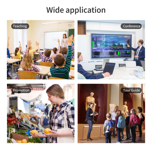 Amplamente utilizado em ensino, treinamento, guias turísticos, conferências, promoções e outras ocasiões. Vem com cordão durável que pode ser pendurado no pulso ou no ombro, deixando suas mãos livres.
