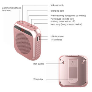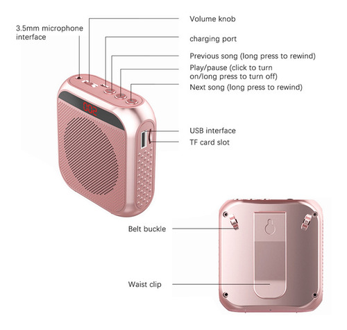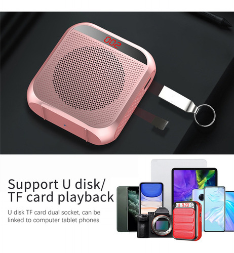 Amplificador portátil de voz com microfones Suporte para cinturo USB TF para professores e treinadores turí Apresentação de treinamento