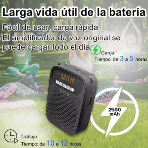 O Salvador S278 é um amplificador de voz pessoal projetado para reduzir a voltagem da fala e amplificar sons suaves. Esse microfone portátil é perfeito para salas grandes, permitindo que os alto-falantes ouçam até quase 10.000 pés quadrados de espaço, com som nítido e sem distorções. Este dispositivo é leve, fácil de usar e portátil. Deite-se confortavelmente na cintura ou pendure nos ombros. Uma pequena caixa amplificadora de voz portátil pode ser facilmente carregada com a ajuda de cabos USB e com uma duração suficientemente longa. É ideal para um maestro, um orador público e um treinador de exercícios com baixo volume crônico.