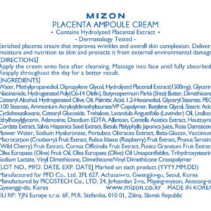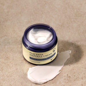 CREME DE AMPOLA DE PLACENTA A abundância de aminoácidos e minerais na placenta evita danos causados pela fadiga na pele e fornece nutrição essencial. Também contém proteína rica que fortalece a energia natural da pele.