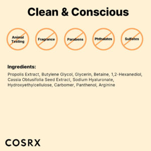 Amópula de cuidado intensivo com 83% de extrato de própolis de abelha preta e ingredientes hidratantes de origem natural que deixarão sua pele brilhante e suave sem viscosidade. – Padrões COSRX: Todos os produtos COSRX são formulados com ingredientes amigáveis à pele que aliviam a pele irritada. Hipoalergênico, testado dermatologicamente, livre de testes em animais, sem parabenos, sem sulfatos, sem ftalatos. Informe que a data de validade do produto está escrita no formato sul-coreano, que é ano/mês/data (YY.MM.DD)