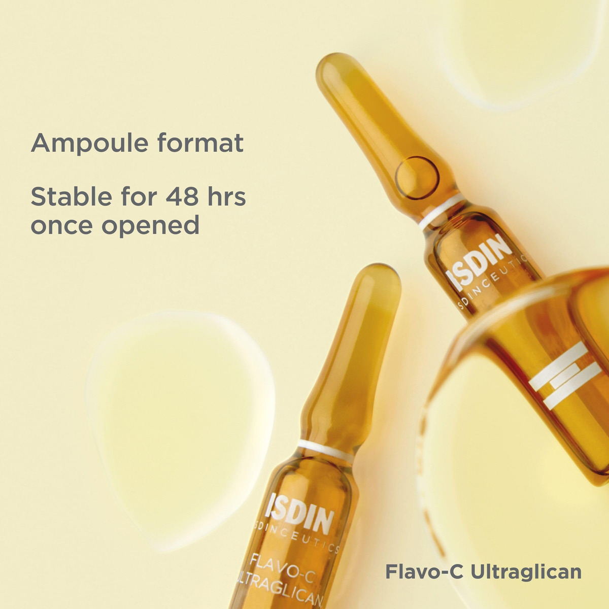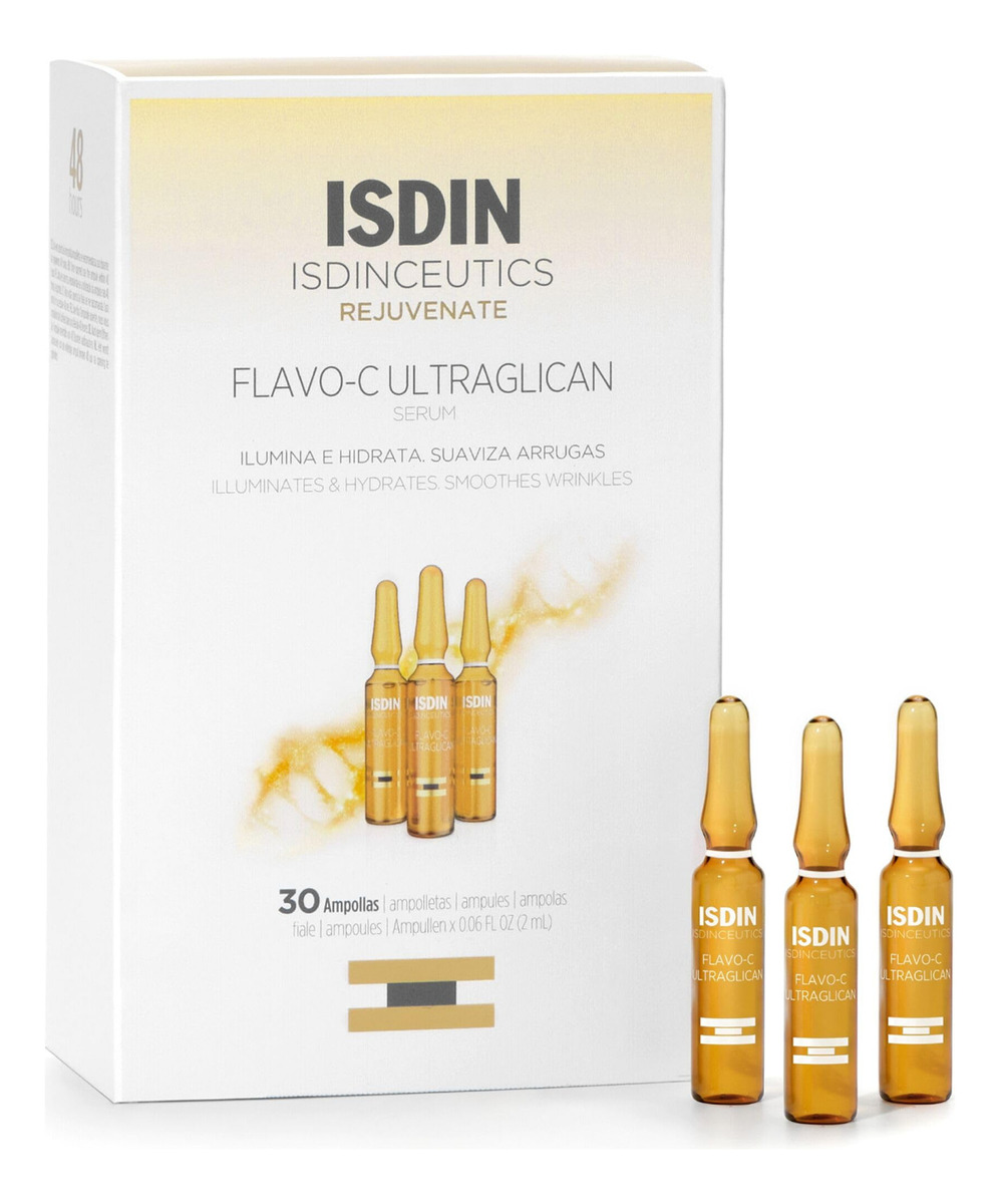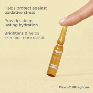 Ampolas de vitamina C com ácido hialurônico e UltraGlycans projetadas para fornecer hidratação e elasticidade profundas, deixando a pele com um brilho radiante. Este sérum em ampola iluminador e hidratante foi formulado para ajudar a proteger contra o estresse oxidativo e hidratar profundamente a pele para um brilho natural e radiante. Agite suavemente e insira a parte superior da ampola no tubo de proteção para abri-la. Coloque a ampola na ponta do aplicador e retire a tampa. Massageie metade do sérum no rosto e pescoço, evitando a área dos olhos. Ingredientes: propilenoglicol, água (água), ácido ascórbico, bis-hidroxietoxipropildimeticona, glicerina, PPG-26-bute-26, tocoferol, óleo de rícino hidrogenado PEG-40, perfume (fragrância), benzoato de sódio, óleo de soja hidrogenado, butilenoglicol, sorbato de potássio, hidrolicol Ácido hialurônico, hidróxido de sódio, tetradecil aminobutíroilvalilaminobutírico, trifluoroacetato de ureia, fenoxietanol, proteoglicano solúvel, cloreto de magnésio, ergotioneína. – SUA SOLUÇÃO PARA: rugas, pele seca e melhora da elasticidade – AÇÃO: amplo espectro UVA/UVB, SPF 50+, vitamina E antioxidante, ajuda efetivamente a bloquear os raios UVA e UVB nocivos do sol com óxido de zinco – TESTADO: A forma natural da vitamina C, um potente antioxidante, ajuda a proteger a pele dos danos dos radicais livres – TECNOLOGIA: Contém vitamina C, UltraGlicanos e ácido hialurônico para ajudar a suavizar a aparência de linhas finas e rugas. Formulado com antioxidantes potentes para ajudar a proteger a pele contra o estresse oxidativo e combater os sinais visíveis do envelhecimento da pele – DESENVOLVIDO EM: Espanha
