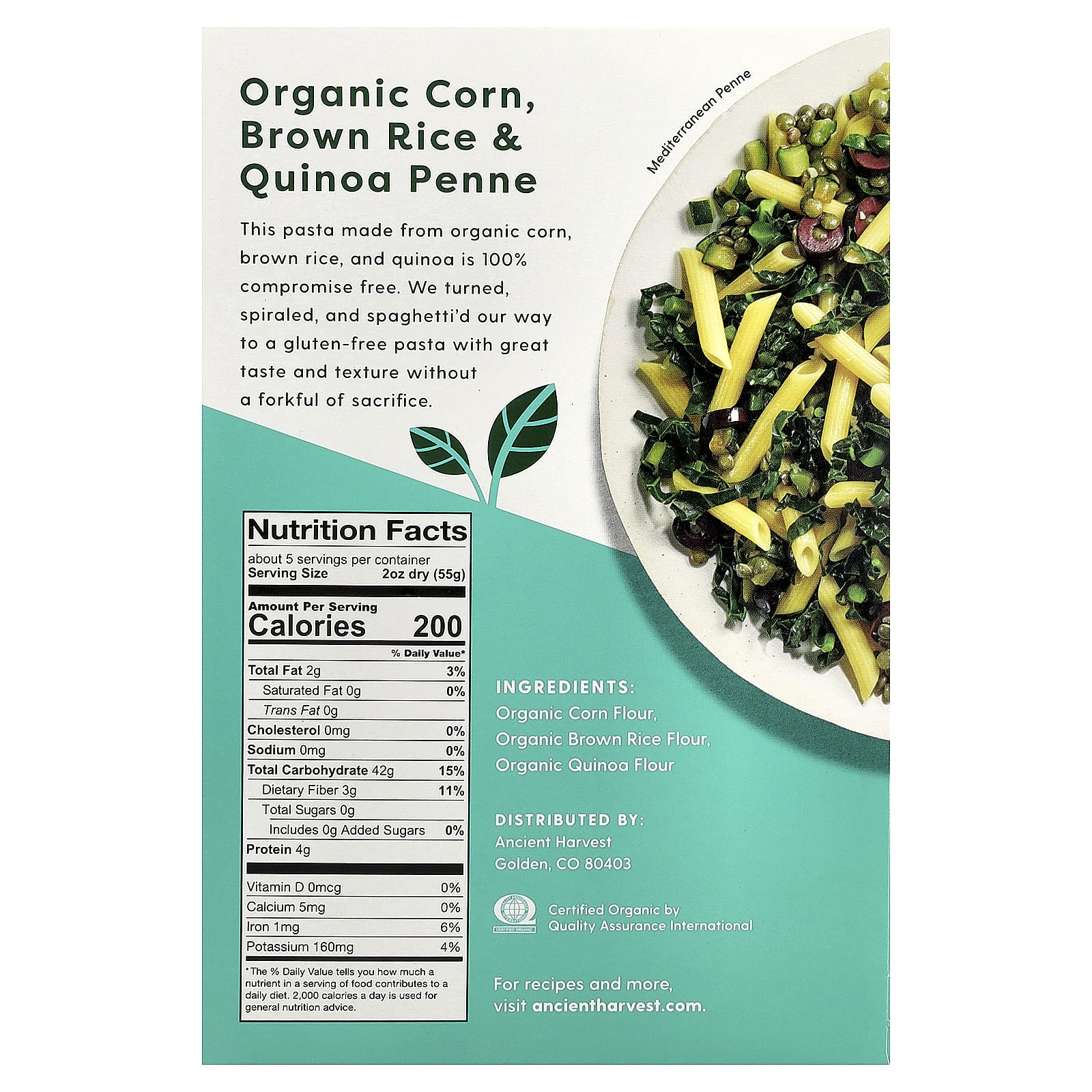 Ancient Harvest Macarrão Orgânico e Sem Glúten Penne Milho Arroz Integral e Quinoa 272 g (96 oz) – Ancient Harvest Alimentos Alimentos embalados e prontos Massas e Macarrão.