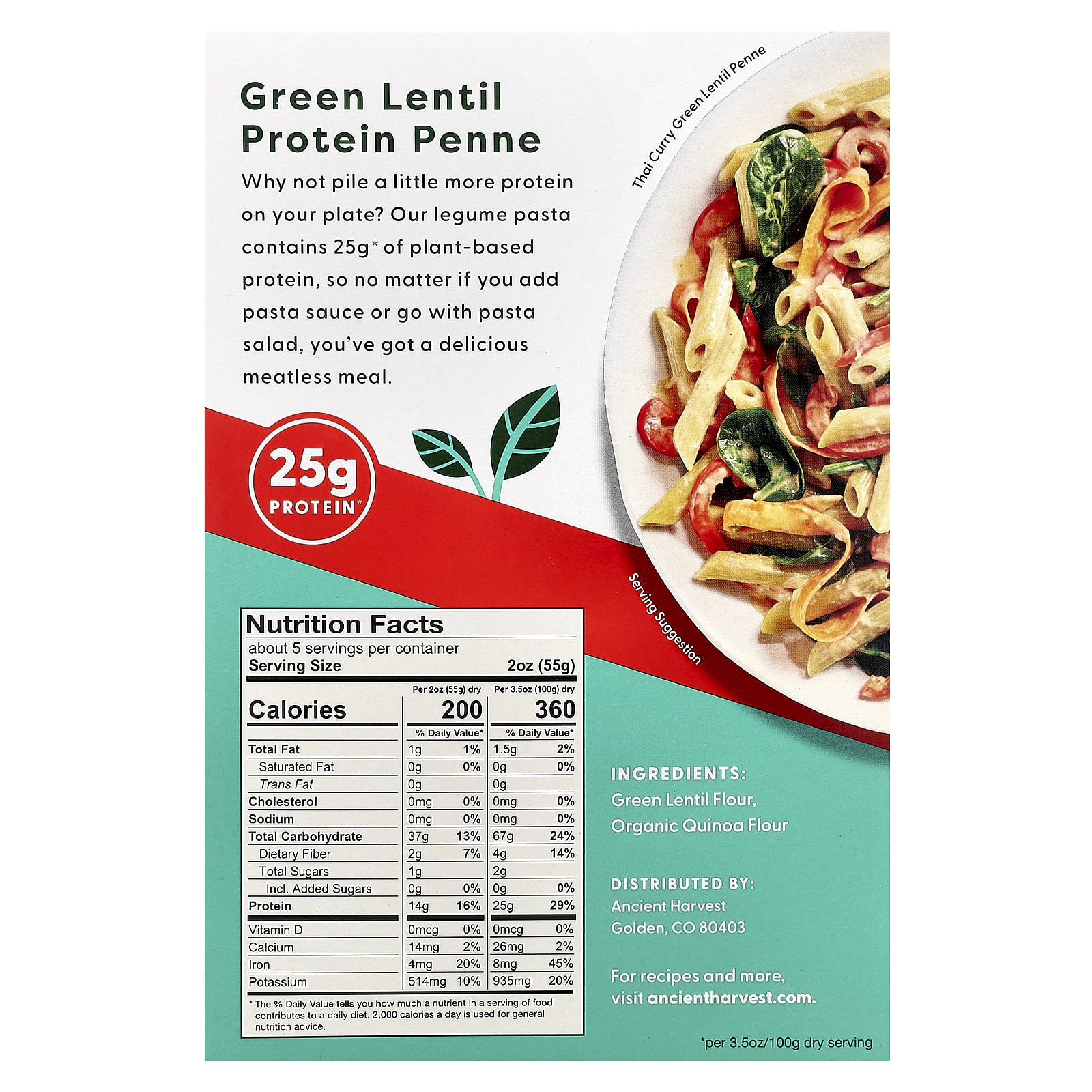 Ancient Harvest Macarrão Proteico à Base de Plantas Penne de Lentilha Verde e Quinoa 272 g (96 oz) – Ancient Harvest Alimentos Alimentos embalados e prontos Massas e Macarrão.