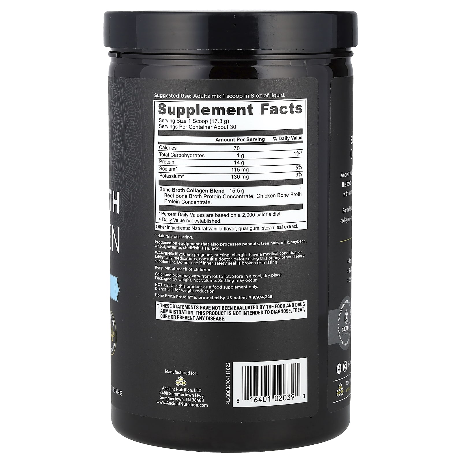 Ancient Nutrition Caldo de Osso Colágeno Baunilha 519 g (11 lbs) – Ancient Nutrition Suplementos Ossos, Articulações e Cartilagem Caldo de ossos Colágeno, Suplementos.