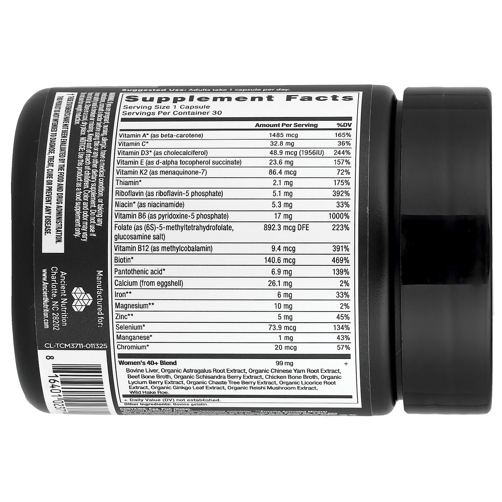 Ancient Nutrition Multivitamínico Uma Vez ao Dia para Mulheres Acima de 40 Anos 30 Cápsulas – Ancient Nutrition Suplementos Saúde da Mulher Multivitamínico Feminino.