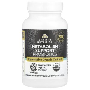 Ancient Nutrition Probióticos de Suporte ao Metabolismo 60 Cápsulas – Ancient Nutrition Suplementos Saúde Intestinal Probióticos Saúde da Mulher Suporte à perimenopausa e à menopausa.