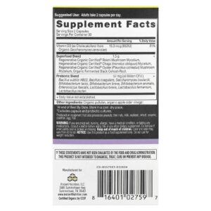Probióticos clinicamente estudados, incluindo SBOs (Organismos Baseados no Solo) resilientes que sobrevivem e prosperam nas condições adversas do intestino. Também com prebióticos (combustível para probióticos) e pós-bióticos (subprodutos benéficos).