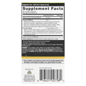 | Mistura de Superalimentos Micélio de Cogumelo Juba-de-leão (Hericium erinaceus) Regenerative Organic Certified®, Micélio de Cogumelo Ostra (Pleurotus ostreatus) Orgânico Certificado®, Extrato da Semente de Mostarda Orgânica (Brassica juncea), Raiz de Alcaçuz Fermentado Orgânico. |