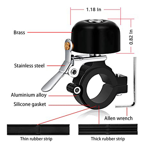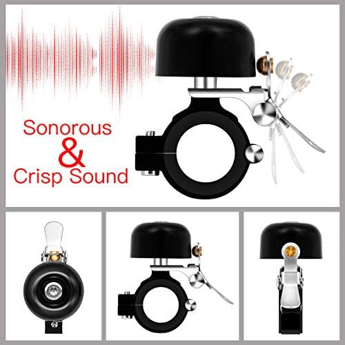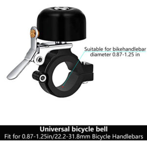 Greallthy Bike Bell Classic Brass Bicycle Bell,Bike Bells for Adults Kids,Loud Sound Bicycle Bell Fit for 0.87-1.25in/22.2-31.8mm Bicycle Handlebars,Road Mountain Bike Accessories. – All-Metal Bike Bell: The whole bell is made of brass, aluminum alloy and stainless steel – Loud Bicycle Bell: Volume: >80 dB, the ringtone is clearly audible even in noisy traffic – Small and light Bike Bell: Only about 50 g. Diameter of the bell is only 1.18 IN, which saves more space for the bicycle handlebar – Fits Most Bikes:Weve included two sizes of aluminum mounting brackets, so it can be installed on handlebars ranging from 22.2 to 31.8 mm, eliminating the need for you to worry about choosing the right size. With seven color options available, our bell is suitable for road bikes, mountain bikes, childrens bikes, and more – Service: If you have any questions during use, please feel free to contact us and we will provide you with satisfactory service