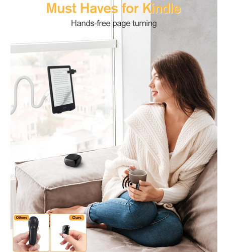 [Remote Page Turner para Kindle] Com o controle remoto que vira páginas, não é necessário tocar continuamente na tela do Kindle para virar as páginas. Basta pressionar o botão para virar a página remotamente. Durante o inverno, você pode ler confortavelmente na cama, mantendo as mãos aquecidas sob o cobertor, sem precisar estender a mão para virar as páginas sem esforço. Especialmente fácil de usar para pessoas com problemas nas articulações das mãos.