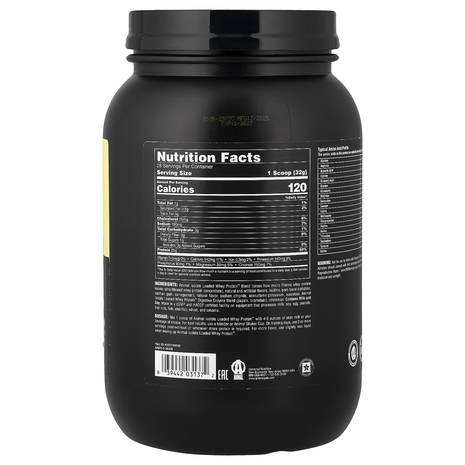 Animal Isolate Loaded Whey Protein™ foi desenvolvido para apoiar os atletas mais dedicados. Com 25 gramas de proteína por porção, ele oferece uma fonte concentrada de aminoácidos essenciais necessários para a construção e reparo muscular. A digestão e a absorção rápidas permitem o fornecimento rápido de nutrientes vitais para os músculos, facilitando a recuperação e o crescimento eficiente. Animal Isolate Loaded Whey Protein™ fornece uma solução conveniente e versátil para atender às suas necessidades diárias de proteína.