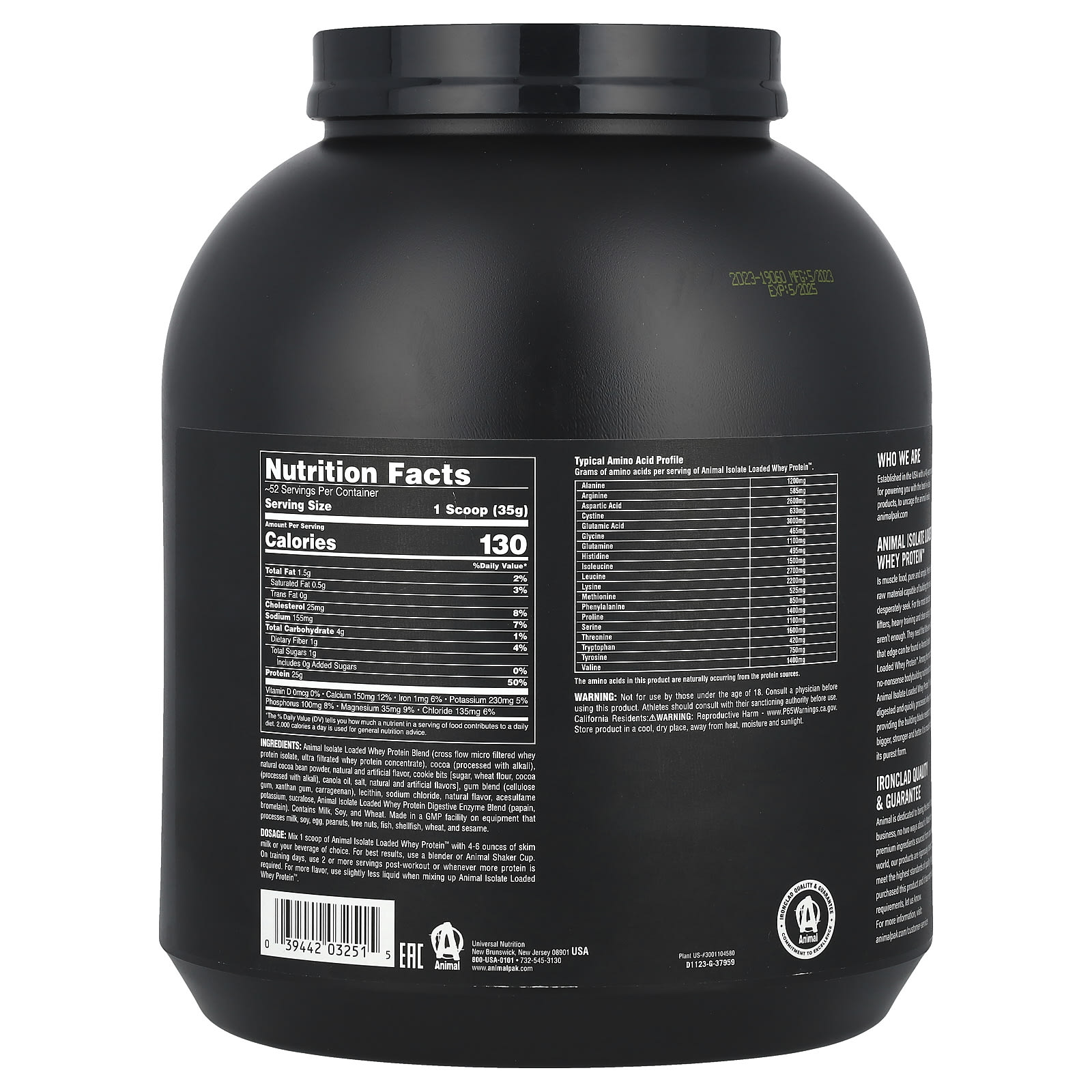 É o alimento para os músculos, puro e simples. A proteína é a matéria-prima capaz de construir a massa que você tanto busca. Para quem levanta peso, não basta apenas treinar pesado e ter uma alimentação saudável. É necessário um pouco mais. E é isso que o Animal Isolate Loaded Whey Protein™ oferece a você. Um dos alimentos mais básicos e práticos para a musculação, Animal Isolate Loaded Whey Protein™ é um whey protein de fácil digestão e processado com rapidez, fornecendo os componentes essenciais necessários para você ficar maior, mais forte e melhor. É o alimento para os músculos, em sua forma mais pura.