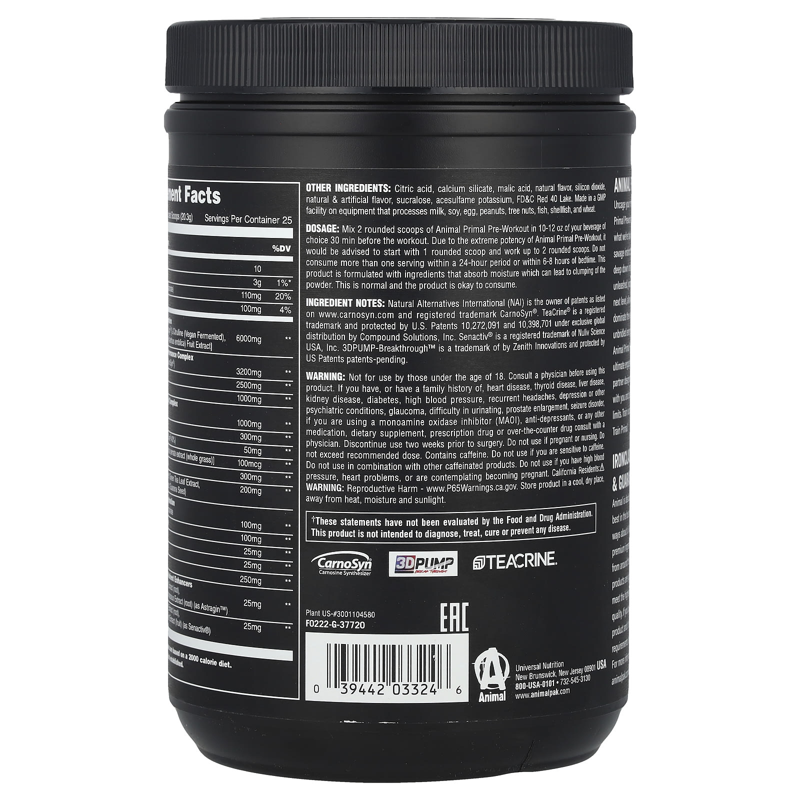 Animal Pretreino em Pó Primal Ponche de Frutas 5075 g (179 oz) – Animal Nutrição Esportiva Suplementos Pré-treino Pré-treino estimulante.