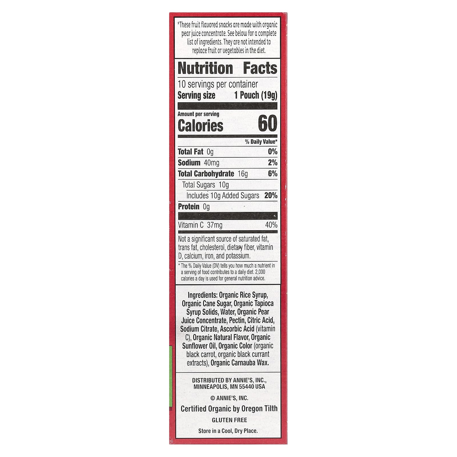 Annies Homegrown Lanches Orgânicos Bunny Fruit™ Morango de Verão 10 Sachês 19 g (07 oz) Cada