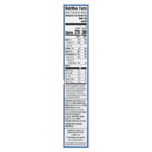 | *Quantidade na mistura seca. Quando preparado com 1/4 de xícara de leite desnatado e 2 colheres de sopa de manteiga com sal, uma porção fornece 14 g de gordura total (8 g de gordura saturada, 0,5 g de gordura trans), 35 mg de colesterol, 550 mg de sódio, 51 g de carboidratos totais (8 g açúcares totais), 9 g de proteína, 100 mg de cálcio e 360 mg de potássio. **A % dos Valores Diários (VD) indica quanto um nutriente em uma porção de alimento contribui para uma dieta diária. O valor diário de 2.000 calorias é usado para recomendações gerais de nutrição. |