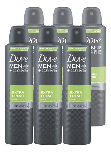 Dove Men+Care | Proteção poderosa antitranspirante extra fresca de 48 horas | 8,45 fl oz-250 ml, 50,7 fl oz (pacote com 6) – Pacote com 6 – O país de origem são os Estados Unidos – A dimensão da embalagem do produto é 9" L x 6" L x 3" H – O peso da embalagem do produto é 2,4 libras