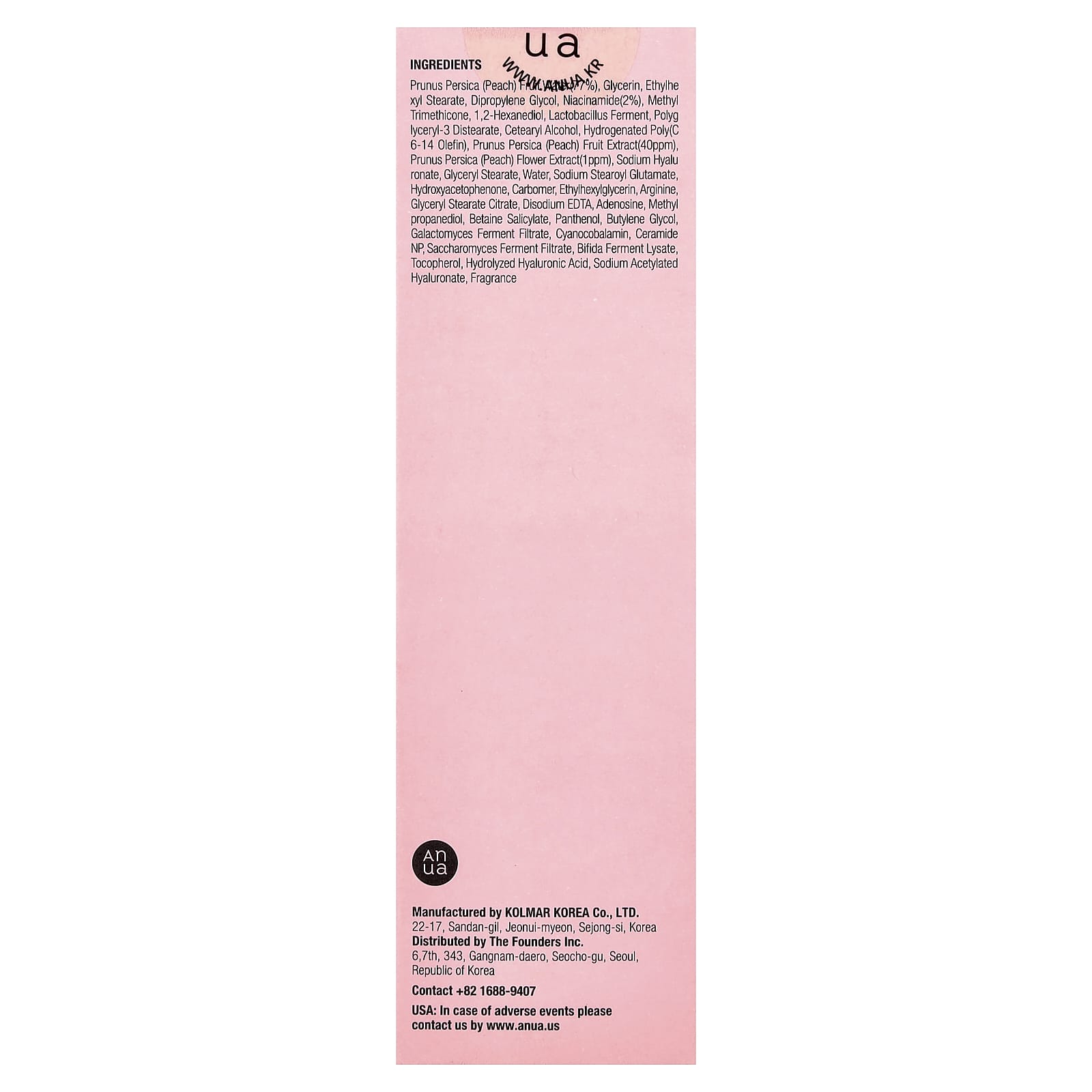 Fruta de Prunus persica (pêssego) (77%), Glicerina, estearato de octila, dipropilenoglicol, nicotinamida (2%), methyl trimethicone, 1,2-hexanodiol, fermento de lactobacilos, diestearato de poliglicerila-3, álcool cetearílico, poli-hidrogenada (olefina c 6-14), extrato da fruta de Prunus persica (pêssego) (40 ppm), extrato da flor de Prunus persica (pêssego) (1 ppm), hialuronato de sódio, monoestearato de glicerila, Água, sodium stearoyl glutamate, hidroxiacetofenona, carbômero, etilhexilglicerina, arginina, citrato de monoestearato de glicerila, EDTA dissódico, adenosina, methylpropanediol, salicilato de betaína, pantenol, butilenoglicol, filtrado de fermentação de Galactomyces, cianocobalamina, ceramida np, filtrado de fermento de saccharomyces, lisado do fermento de bífida, Tocoferol, ácido hialurônico hidrolisado, hialuronato acetilado de sódio, fragrância.