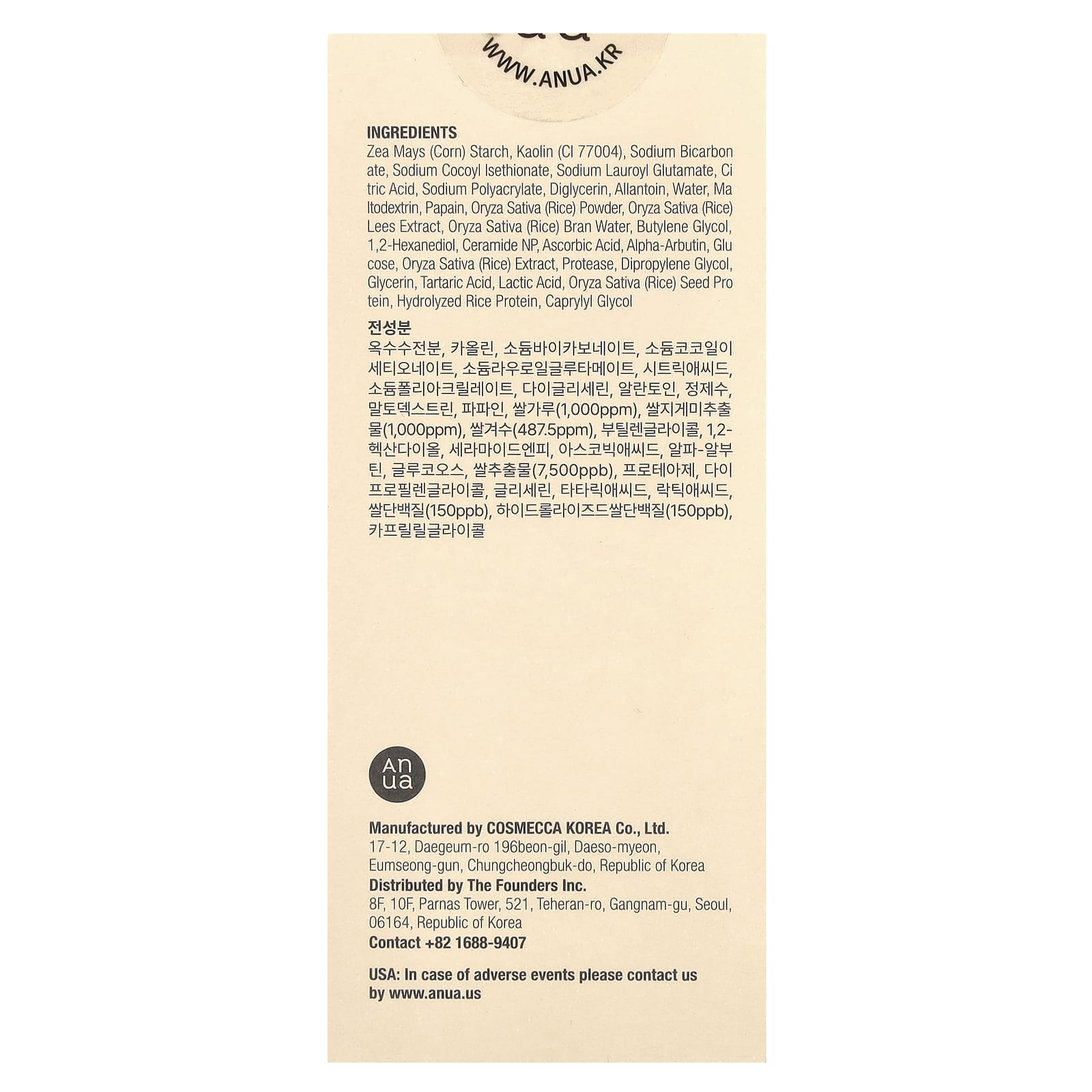 Anua Pó de Limpeza Iluminador de Enzimas de Arroz Arroz + Ceramida 40 g (141 oz) – Anua Beleza Limpeza Facial Sabonetes Faciais Limpeza facial K-Beauty.