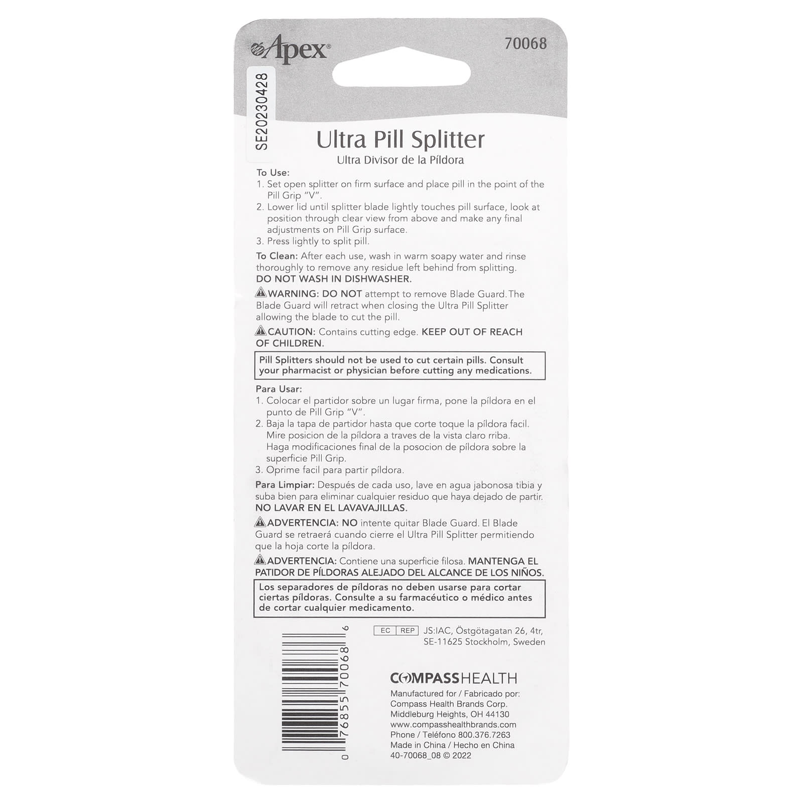 - Inclui Blade Guard para maior segurança. Um prático protetor da lâmina mantém você seguro enquanto usa o triturador de comprimidos ergonômico.