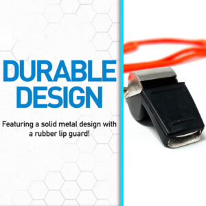 The Franklin Sports Metal Whistle with Lip Guard is designed for coaches and referees of any sport. The whistle features a heavy-duty nylon lanyard to keep the whistle close and a metal swivel to prevent tangling. Make sure you are heard from anywhere on the field or court with the extremely loud noise this cork pea whistle produces
