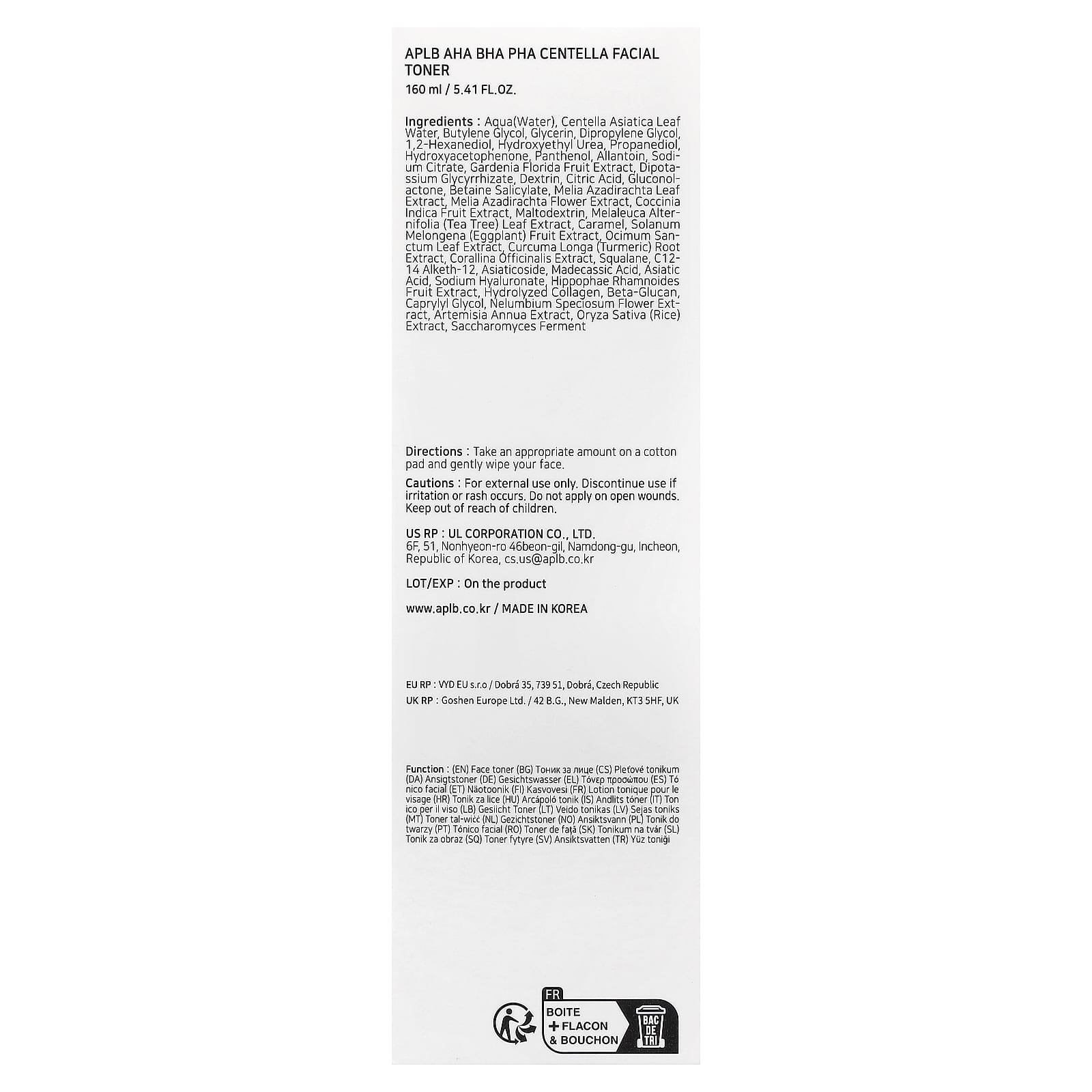 APLB AHA BHA PHA Tônico Facial de Centella 160 ml (541 fl oz) – APLB Beleza Limpeza Facial Loções tônicas Tônicos faciais K-Beauty.