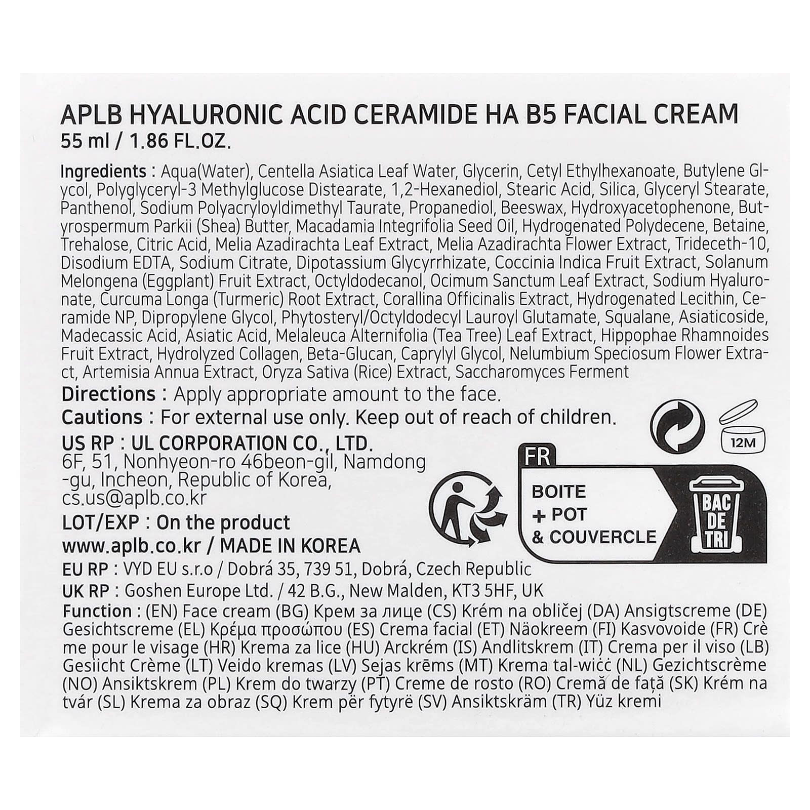 APLB Creme Facial Ceramida HA B5 com Ácido Hialurônico 55 ml (186 fl oz) – APLB Beleza Hidratantes Faciais e Cremes Hidratantes e Cremes K-Beauty Beleza por Ingrediente Cuidados com a Pele com Ácido Hialurônico.