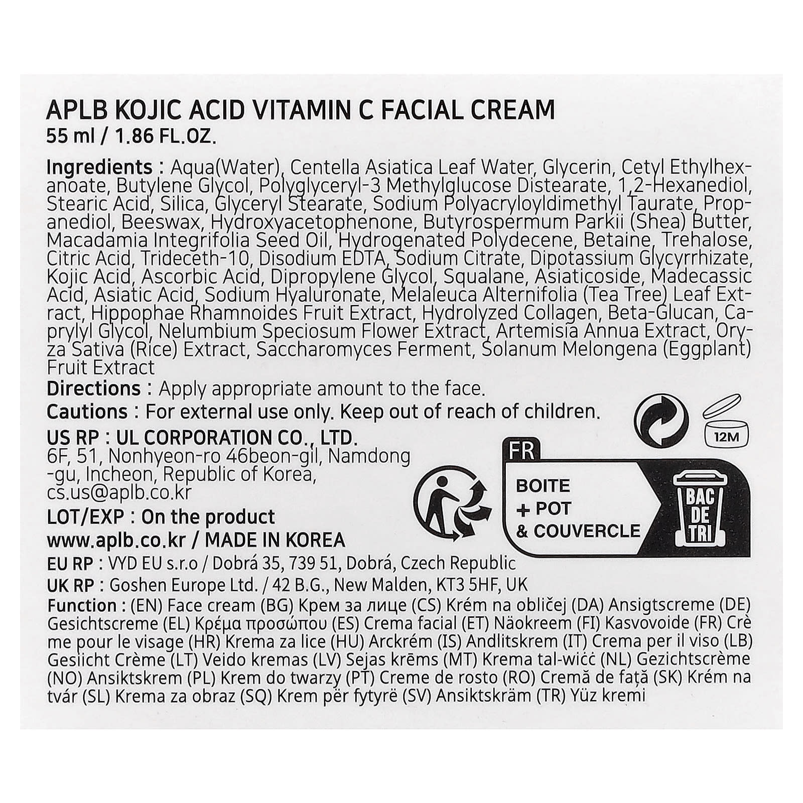 APLB Creme Facial com Ácido Kojic e Vitamina C 55 ml (186 fl oz) – APLB Beleza Beleza por Ingrediente Cuidados com a Pele com Vitamina C Hidratantes Faciais e Cremes Hidratantes e Cremes K-Beauty.