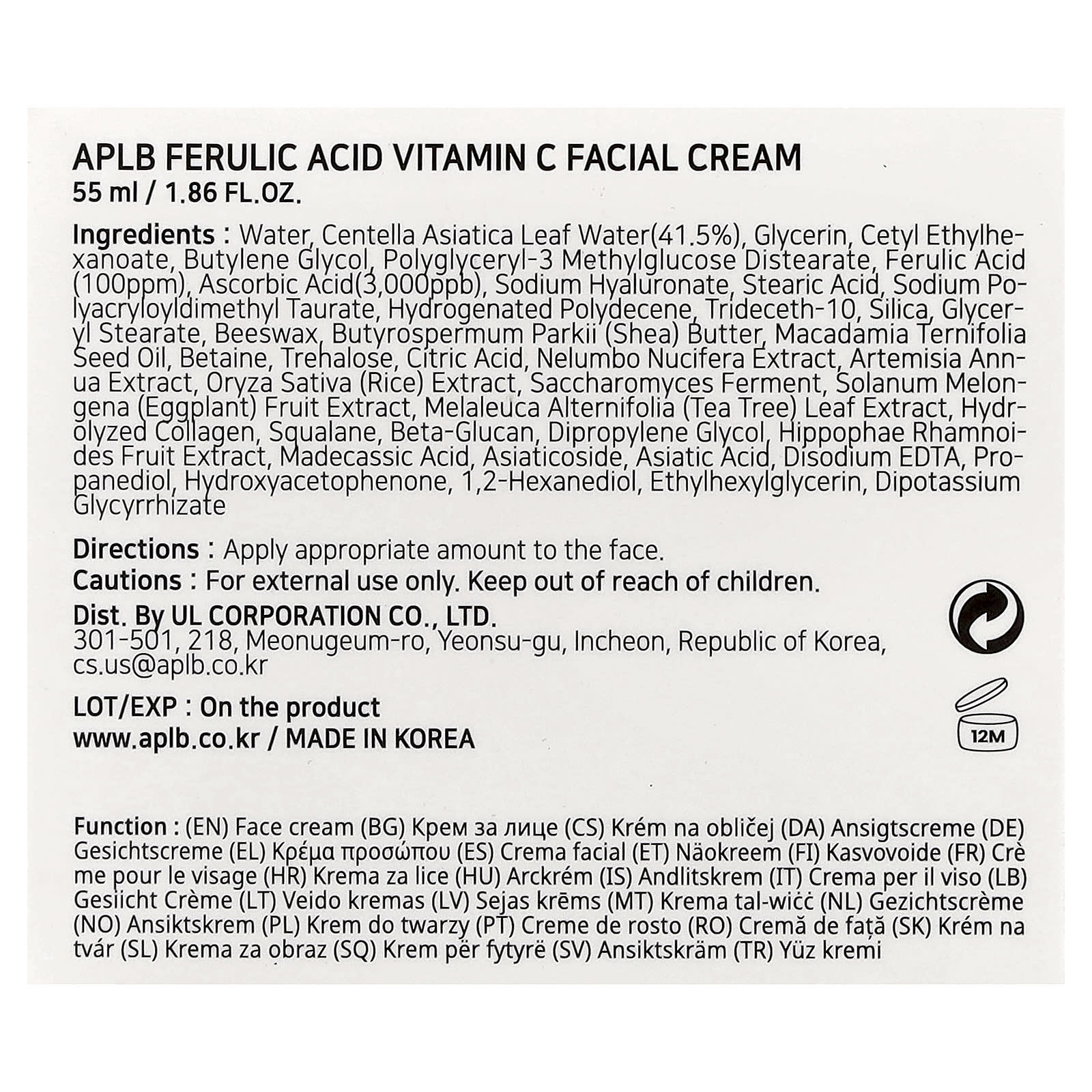 APLB Creme Facial com Vitamina C e Ácido Ferulico 55 ml (186 fl oz) – APLB Beleza Beleza por Ingrediente Cuidado para a pele com Centella Hidratantes Faciais e Cremes Hidratantes e Cremes K-Beauty.