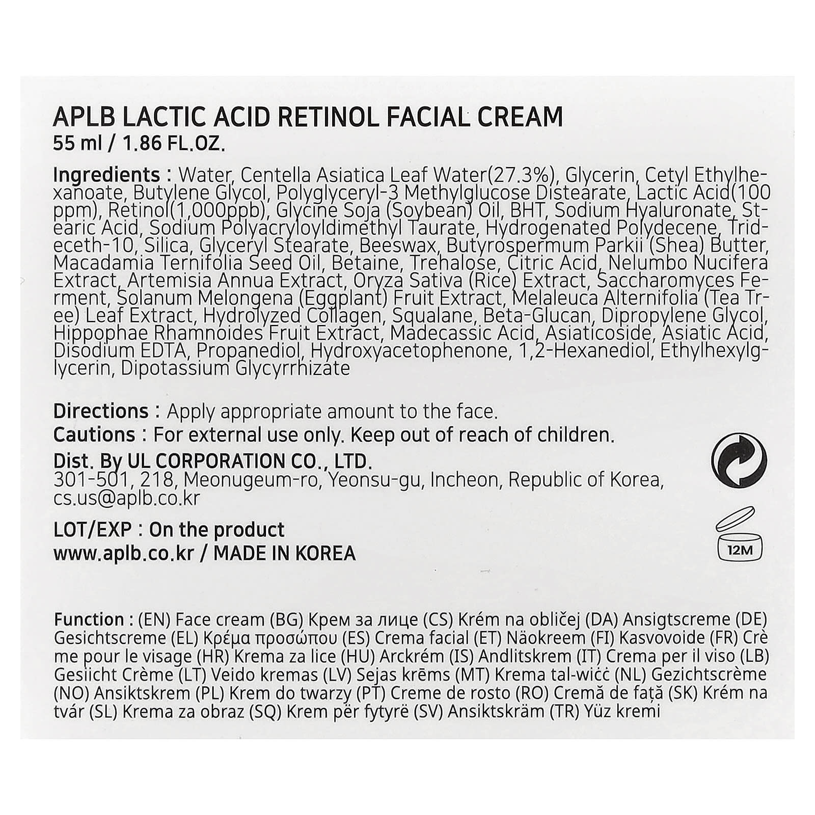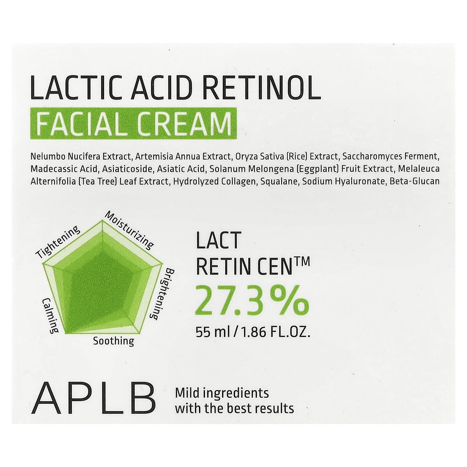 APLB Creme Facial de Ácido Láctico e Retinol 55 ml (186 fl oz) – APLB Beleza Beleza por Ingrediente Cuidados com a Pele com Retinol Hidratantes Faciais e Cremes Hidratantes e Cremes K-Beauty.