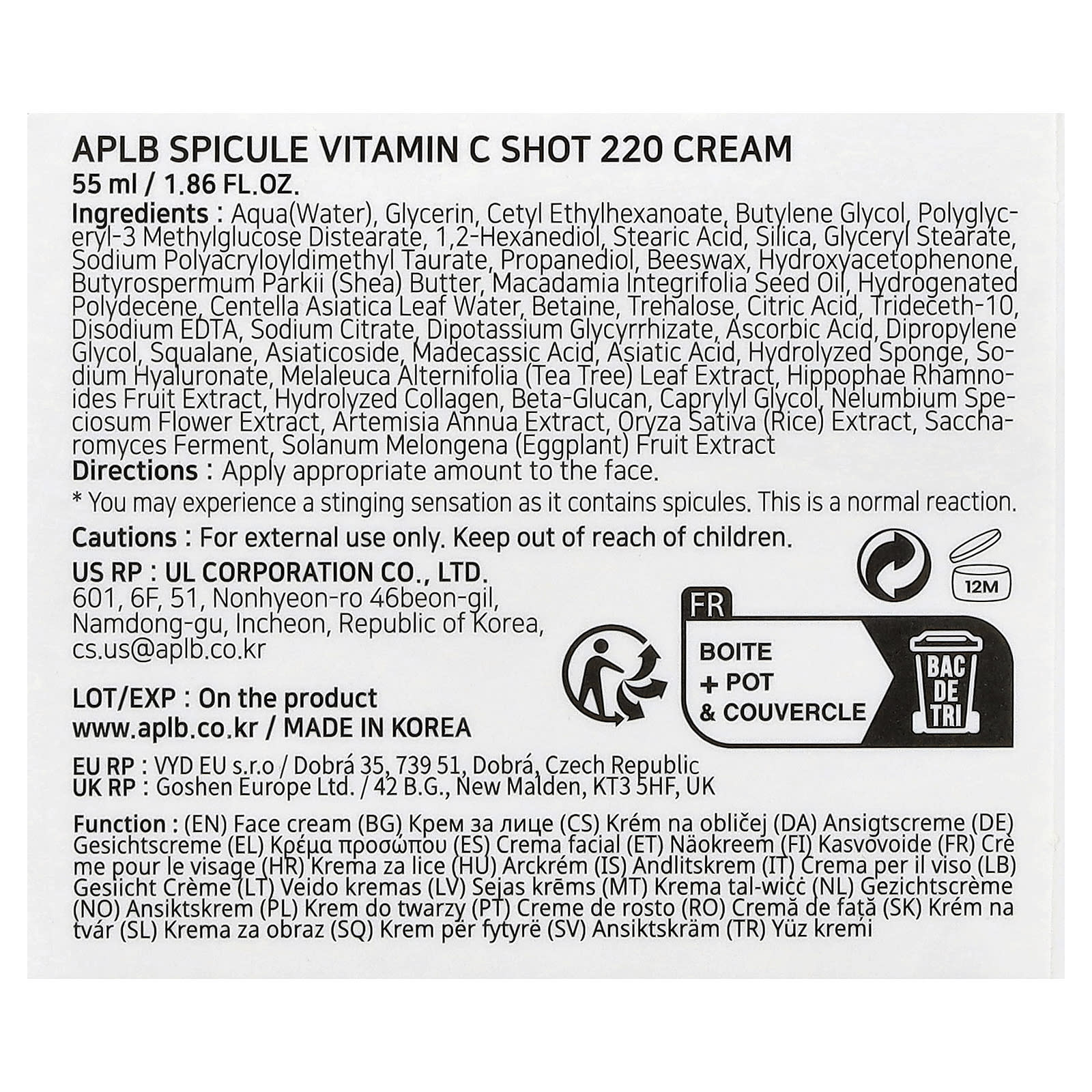 APLB Creme Spicule Vitamin C Shot 220 55 ml (186 fl oz) – APLB Beleza Beleza por Ingrediente Cuidados com a Pele com Vitamina C Hidratantes Faciais e Cremes Hidratantes e Cremes K-Beauty.
