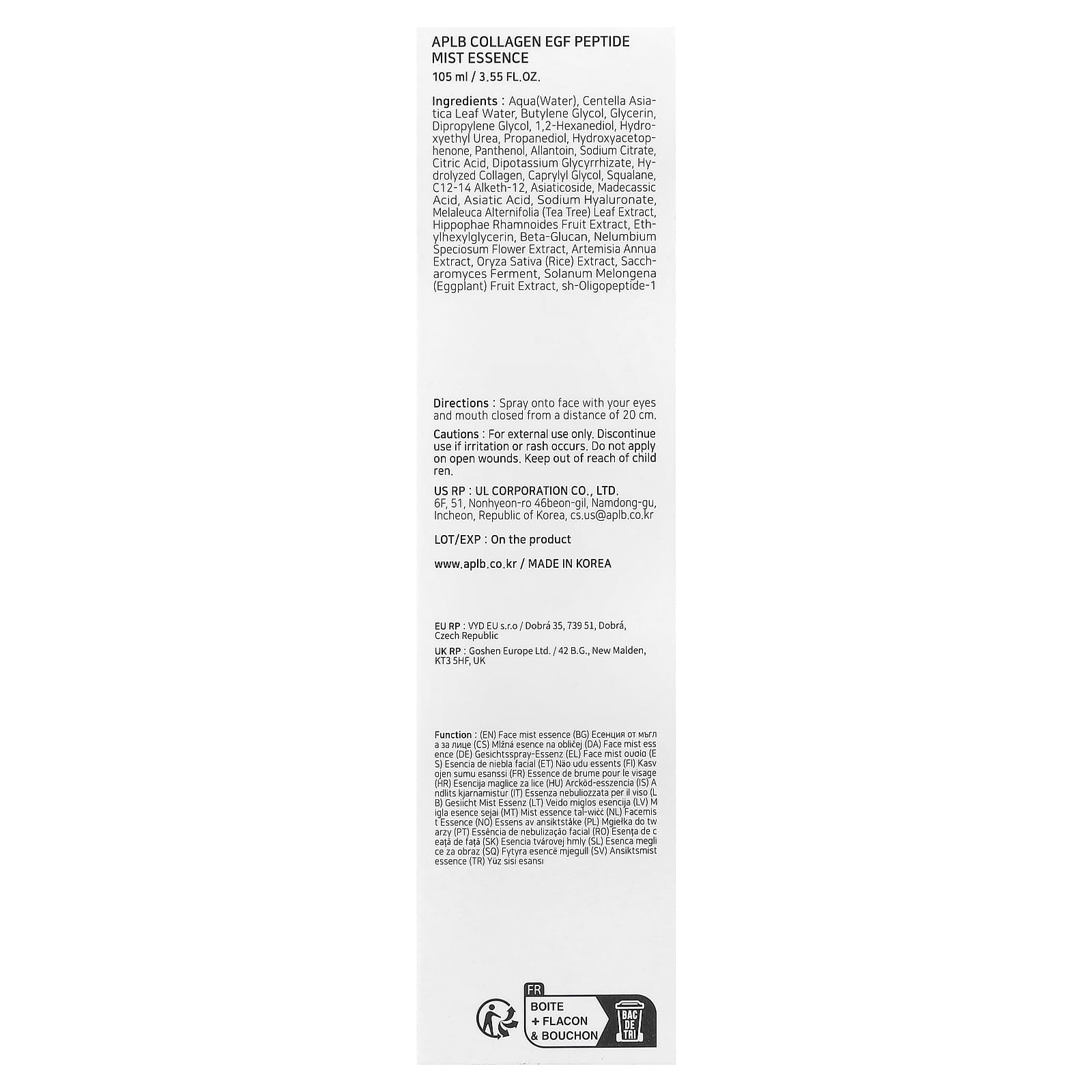 APLB Essência da Névoa de Peptídeo EGF de Colágeno 105 ml (355 fl oz) – APLB Beleza Hidratantes Faciais e Cremes Bruma facial Bruma facial K-Beauty.