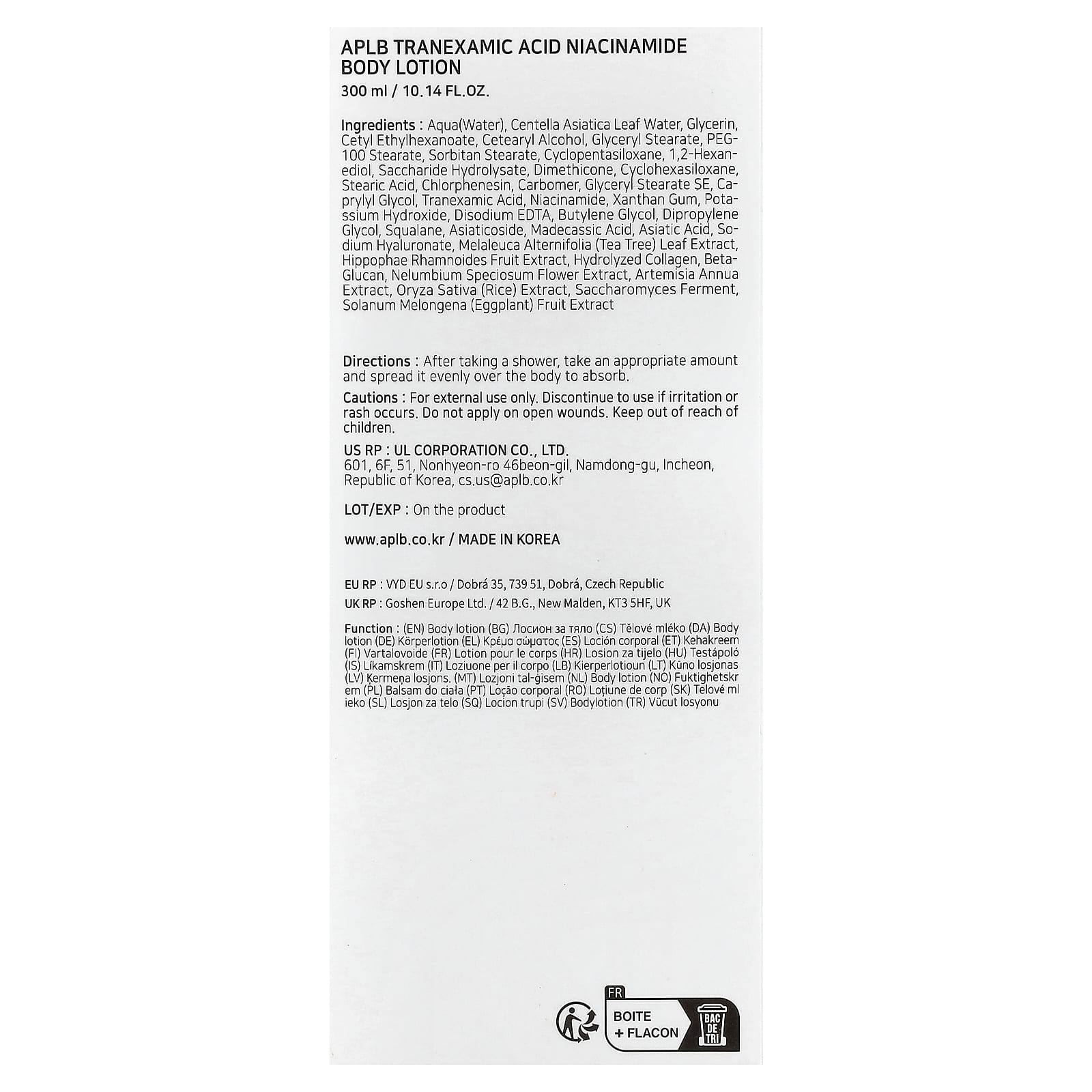 APLB Loção Corporal de Nicotinamida com Ácido Tranexâmico 300 ml (1014 fl oz) – APLB Cuidados Pessoais Cuidados com o Corpo Loção Beleza Beleza por Ingrediente Cuidado para a pele com ácido tranexâmico.