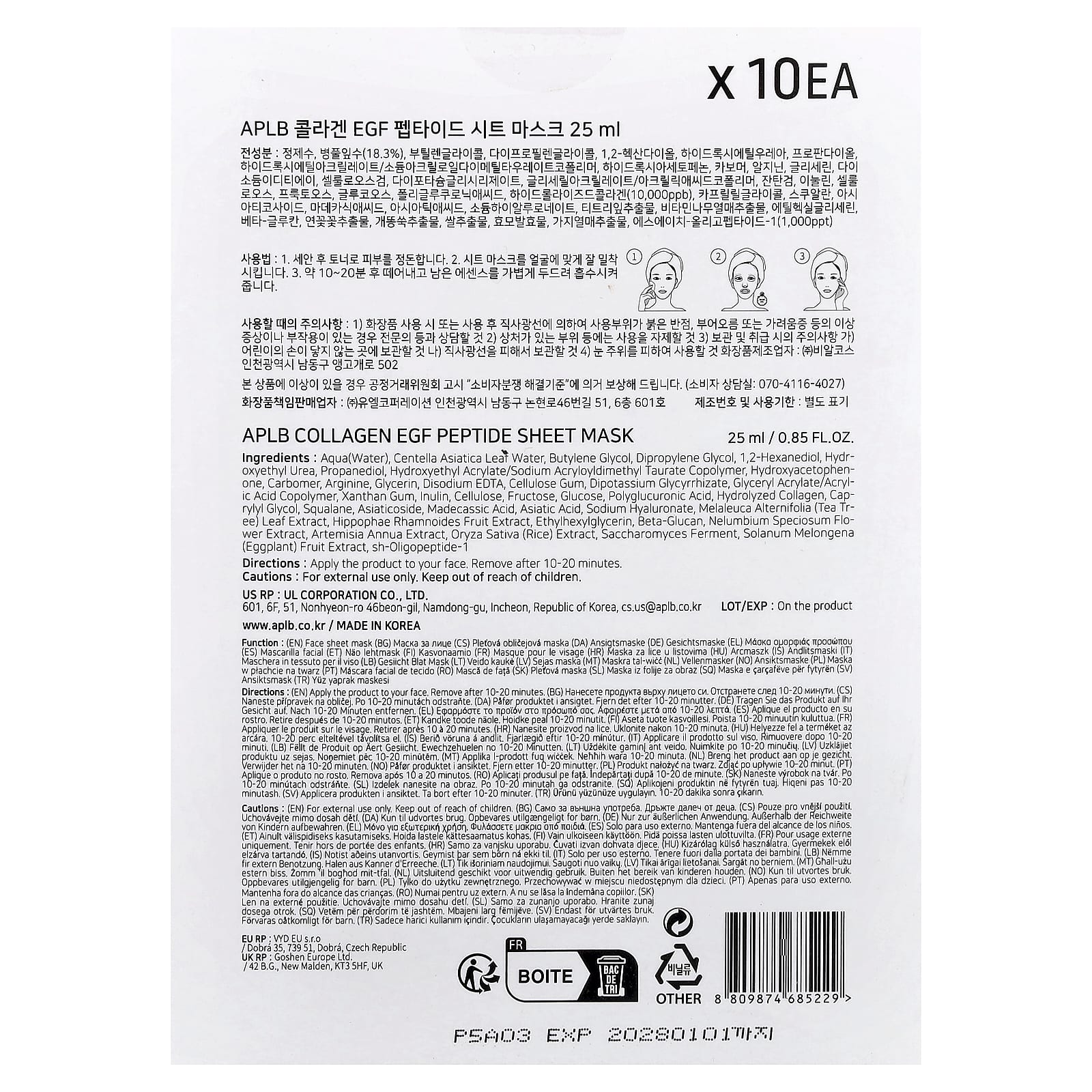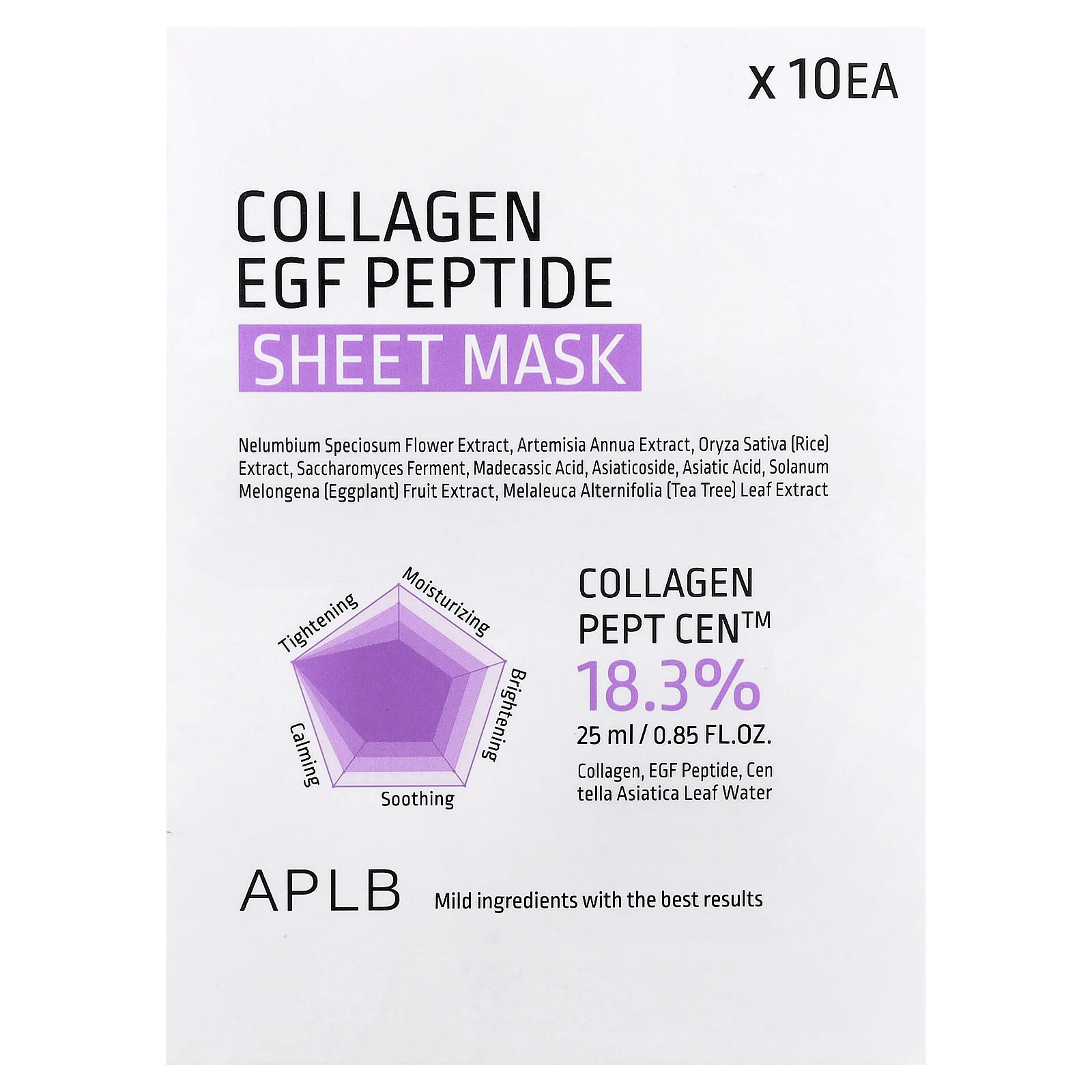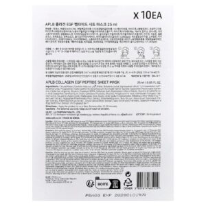 APLB Máscara Facial de Beleza Peptídeos de Colágeno EGF 10 Folhas 25 ml (085 fl oz) – APLB Beleza Máscaras Faciais de Beleza Máscaras Faciais Máscaras em folha K-Beauty.