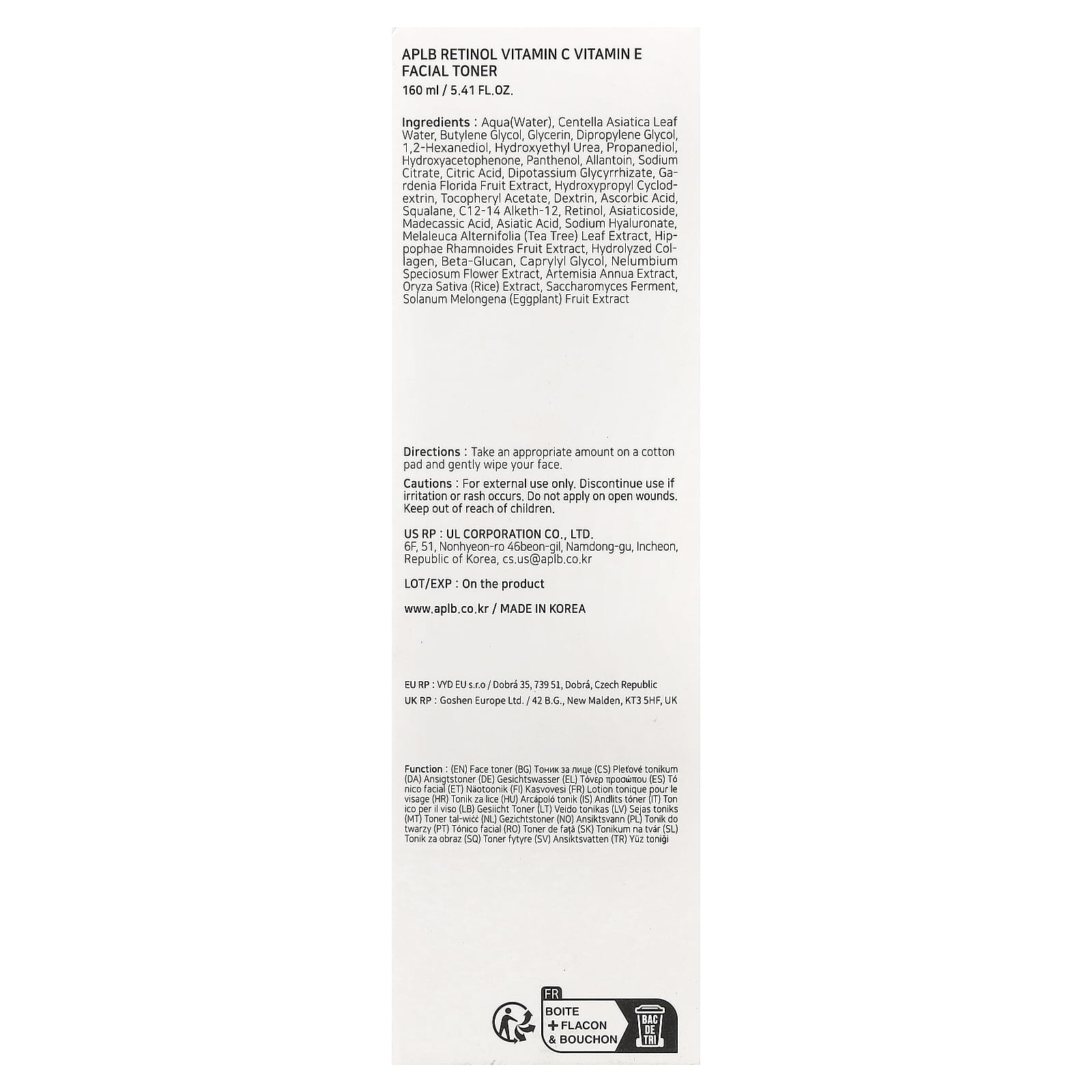APLB Tônico Facial de Retinol Vitamina C Vitamina E 160 ml (541 fl oz) – APLB Beleza Limpeza Facial Loções tônicas Tônicos faciais K-Beauty.