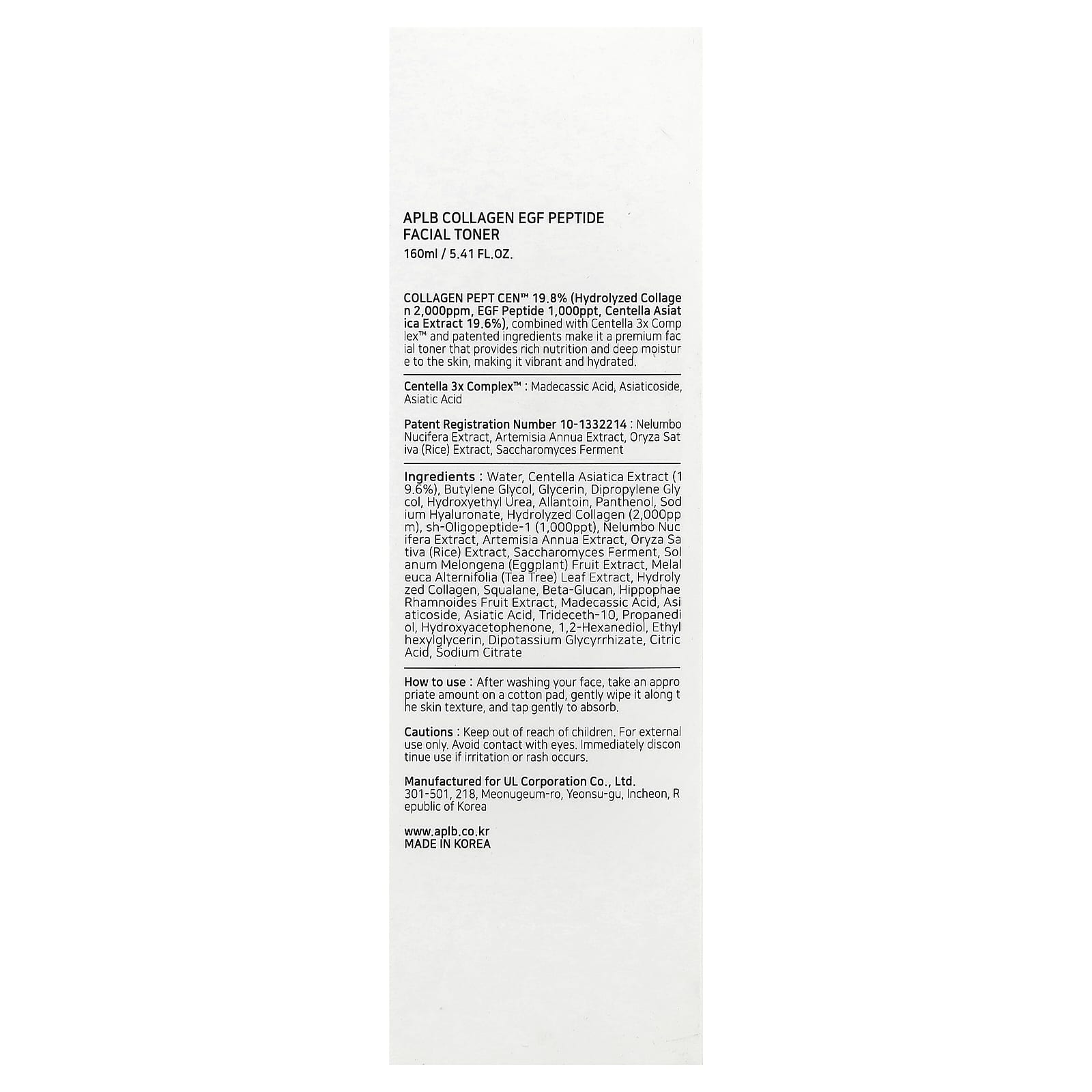 APLB Tônico Facial Peptídeo EGF de Colágeno 160 ml (541 fl oz) – APLB Beleza Limpeza Facial Loções tônicas Tônicos faciais K-Beauty.