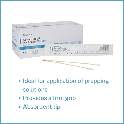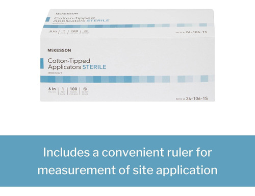 Palito aplicador com ponta de algodão McKesson, estéril, eixo de madeira, 6 polegadas, 100 unidades, 10 pacotes, total de 1000 – Régua conveniente para medir o local de aplicação, medindo 6 polegadas (15,2 centímetros) – A ponta de algodão absorvente sem látex contém soluções para facilitar a aplicação nas áreas da pele – Os aplicadores estéreis de cotonete são embalados individualmente. – Estéreis e embalados individualmente para uso único e descartados para uso único e descartados para uso único. conveniência e redução da contaminação cruzada – Os swabsticks médicos são para uso único