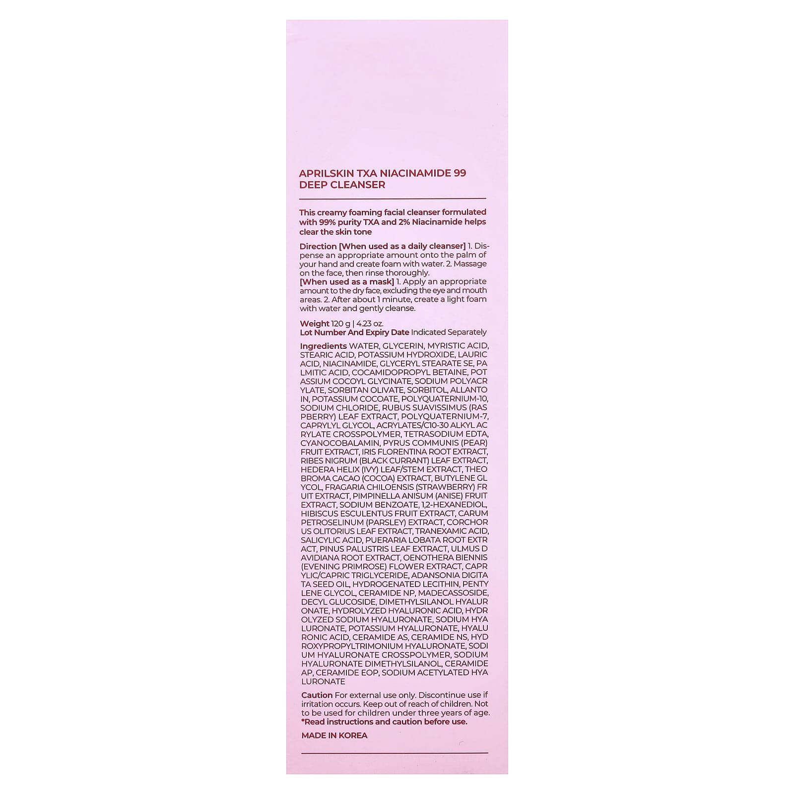April Skin TGA Nicotinamida 99 Solução de Limpeza Profunda 120 g (423 oz) – April Skin Beleza Limpeza Facial Limpadores faciais K-Beauty.