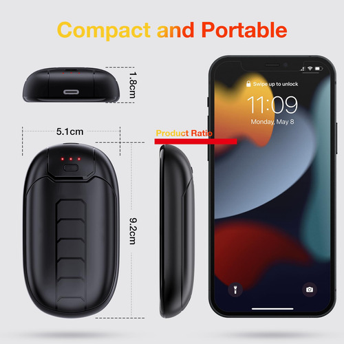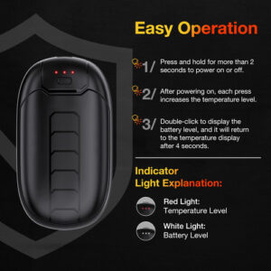 1 – Novos aquecedores de mãos 2 em 1 atualizados: recarregáveis, elegantes e ultraportáteis. Seu design ergonômico garante uma pegada confortável e fácil transporte. Completo com um chip de controle de temperatura certificado de segurança e um único botão para todas as operações, esses aquecedores oferecem um toque premium e um calor consistente. – Aquecimento rápido, calor duradouro: sinta o calor em apenas 2 segundos com esses aquecedores de mãos recarregáveis. Com três configurações de temperatura de 95F a 131F, esses aquecedores de mãos são alimentados por bateria de 6000mAh, fornecendo 6 a 12 horas de aquecimento contínuo. – Magnético, ultrafino e ultraleve: pacote com 2 aquecedores de mãos se unem magneticamente, fornecendo aquecimento de 360 graus e fácil portabilidade. Como alternativa, separe-os para um aquecedor por mão para fornecer aquecimento duplo. Cada aquecedor de mãos mede apenas 1,8 cm de espessura e 75 g de peso, cabendo facilmente nos bolsos. – Certificado de segurança e qualidade premium: nossos aquecedores de mãos portáteis atualizados de 2024 possuem certificações UL, CE e FCC, garantindo que atendam aos mais altos padrões de segurança e qualidade. Feito de alumínio de alta tecnologia para aviação, materiais ABS e artesanato meticuloso, é construído para manter você aquecido e durar muito tempo. – O melhor presente para amantes de atividades ao ar livre: ideal para caçadores, jogadores de golfe, esquiadores, caminhantes, campistas e qualquer outra pessoa que aguente o frio, o aquecedor de mãos N1 é a escolha perfeita. Também é particularmente adequado para quem tem Raynauds ou qualquer pessoa propensa a mãos frias, oferecendo o calor e o conforto de que precisam. Presente de inverno perfeito para você, família e amigos.